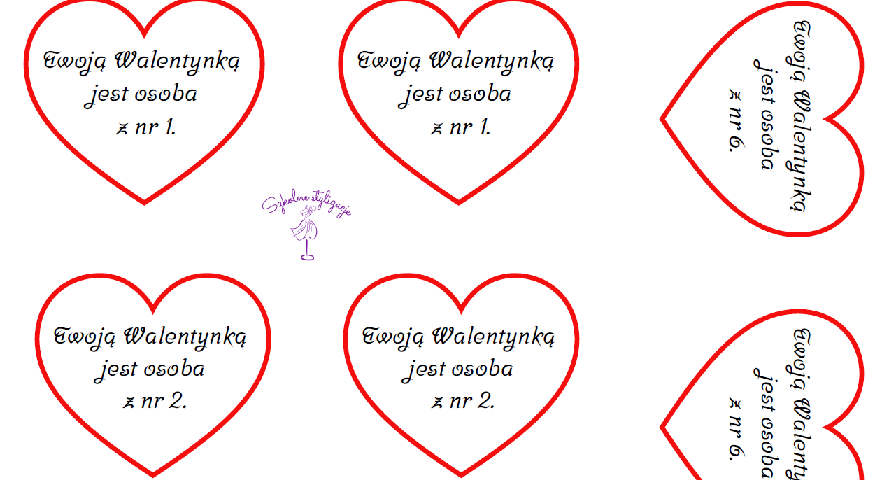 Zestaw zawiera 21 par ponumerowanych serduszek (3 kartki) oraz 7 par nienumerowanych serduszek (1 kartka), do samodzielnego uzupełnienia.