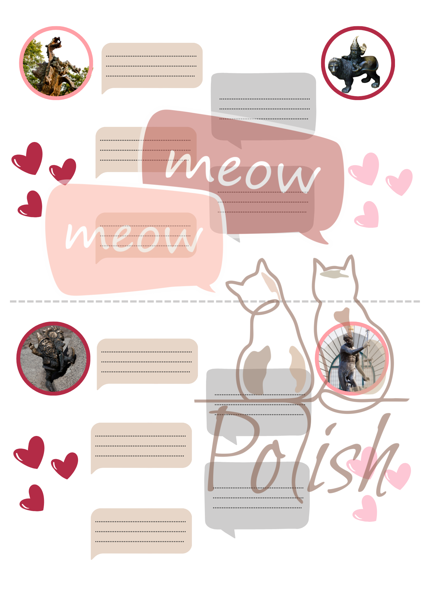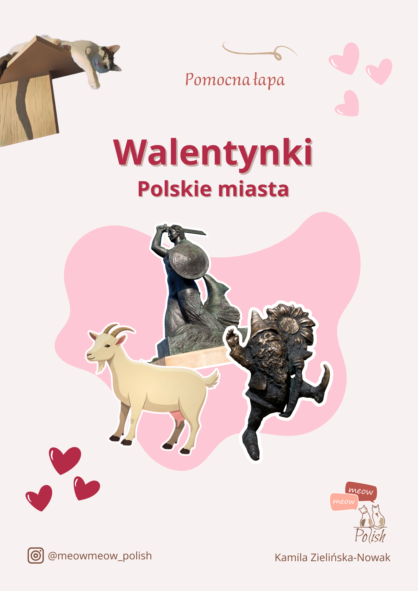 Przygotowałam dla Ciebie materiał, dzięki któremu w ciekawy sposób wykorzystasz temat walentynek do przećwiczenia i gramatyki, i słownictwa :) W materiale znajdziesz 12 kart postaci - symboli polskich miast (m.in. wrocławskie krasnoludki, warszawską syrenkę czy toruńskiego pierniczka), które przez portal randkowy szukają przyjaźni lub miłości. Uczniowie samodzielnie lub grupowo mogą wypełniać informacje o naszych bohaterach, ćwicząc tworzenie zdań w języku polskim. Ponadto znajdziesz tu 12 kart przedstawiających rozmowę w komunikatorze między dwiema postaciami. O czym może rozmawiać koziołek z Poznania ze smokiem wawelskim lub krasnale między sobą? To zależy tylko od wyobraźni uczniów. Sprawdź inne moje materiały i ucz się języka z przyjemnością!