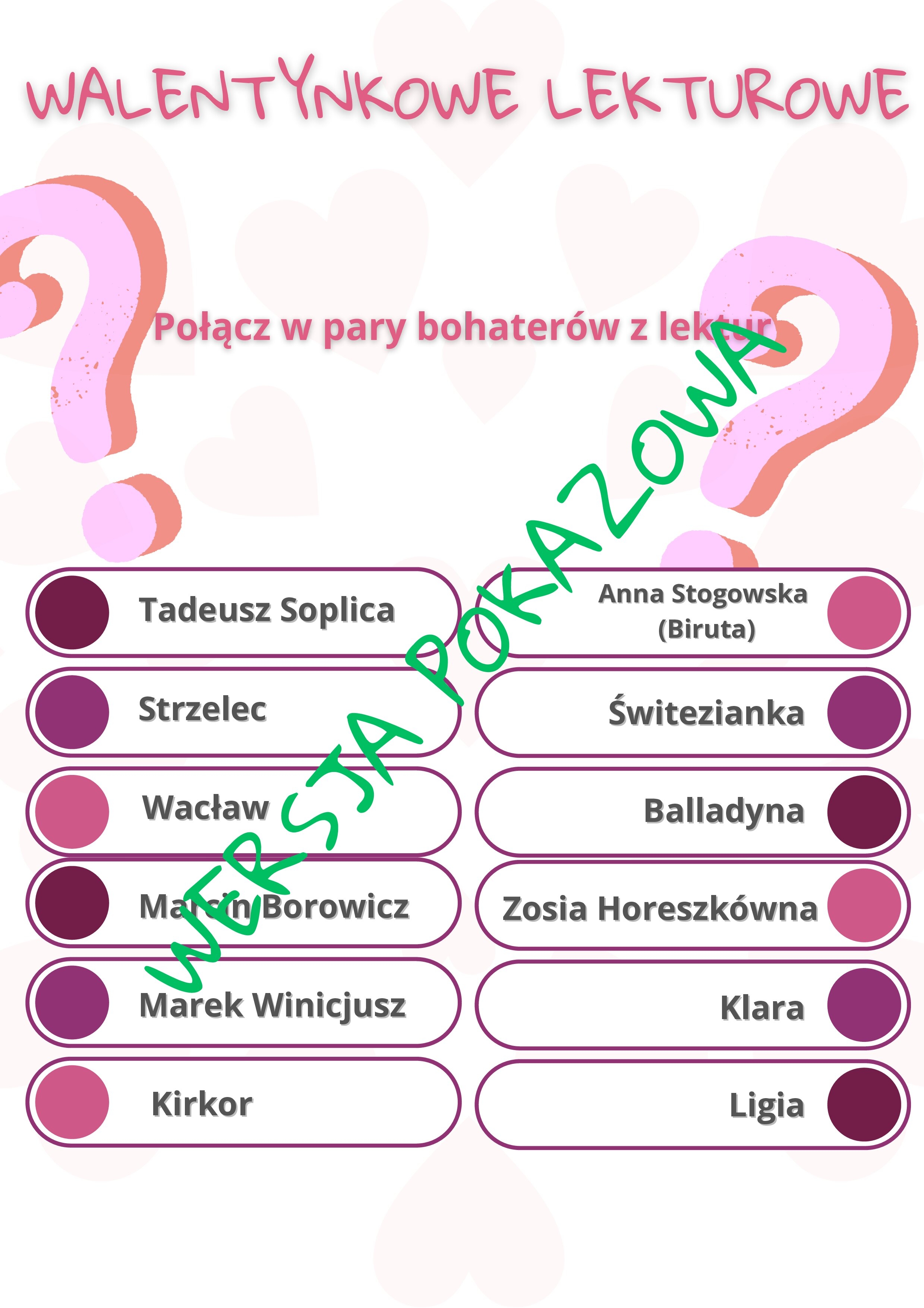 - zadanie na dobranie znanych par z lektur 7- 8,