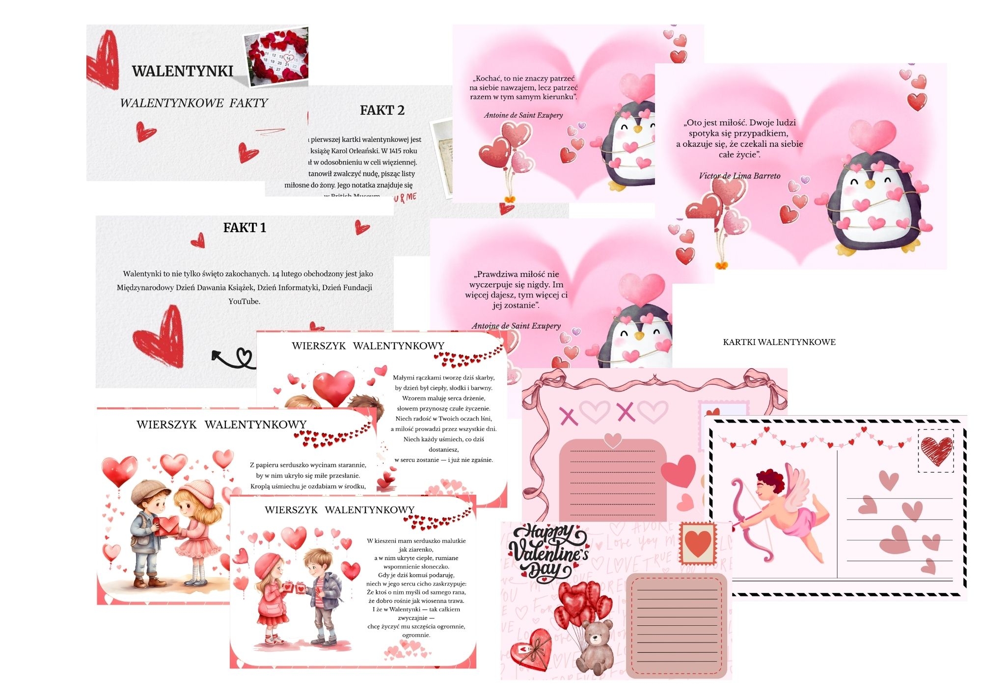 • Walentynkowe wierszyki i cytaty – w kolorowej oprawie, świetne do zajęć, dekoracji lub jako dodatek do laurek.