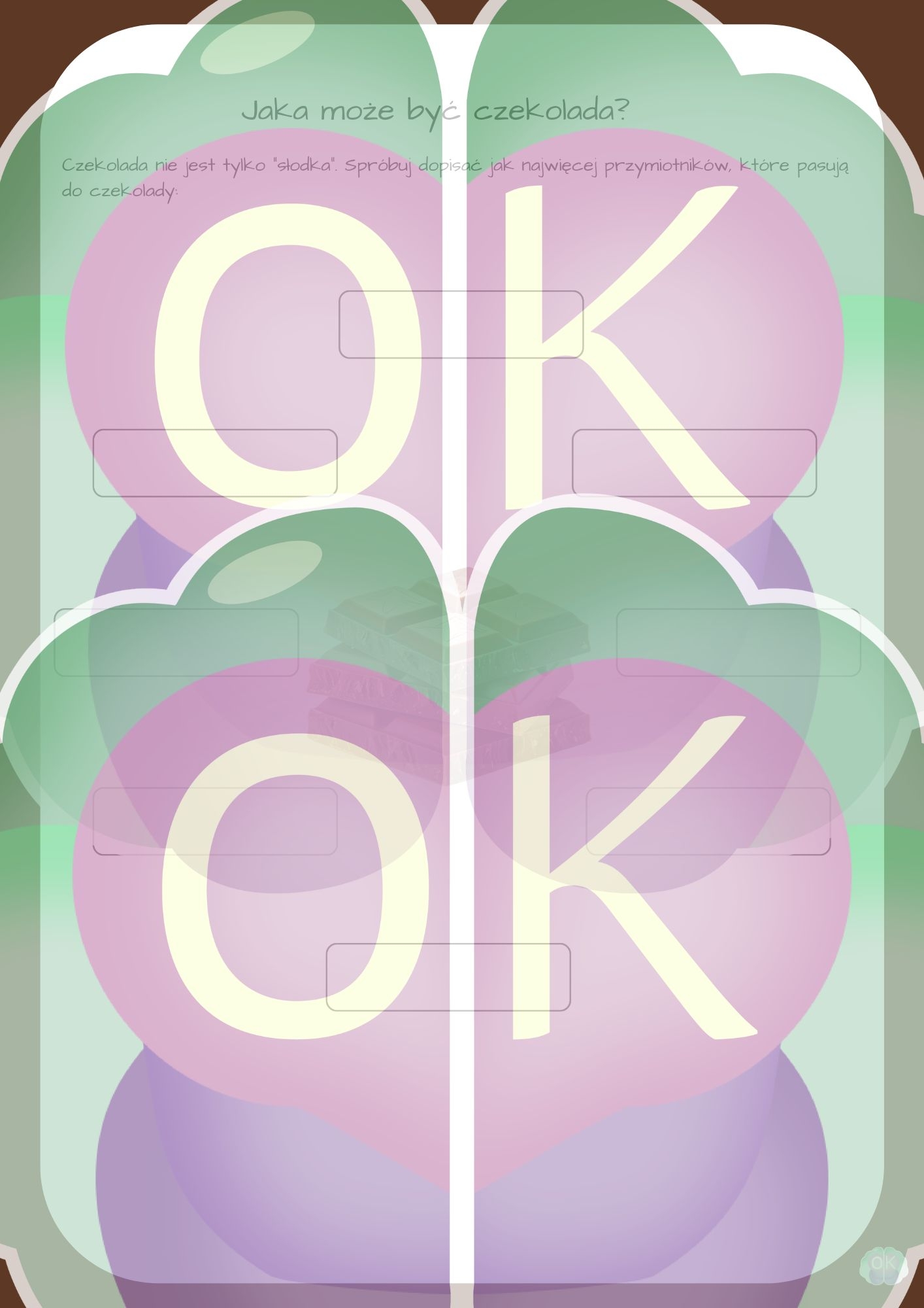 Mój Projekt Czekolady: Zostań mistrzem cukiernictwa! Zadanie polegające na zaprojektowaniu własnego smaku, nazwy i autorskiego opakowania wymarzonej tabliczki.