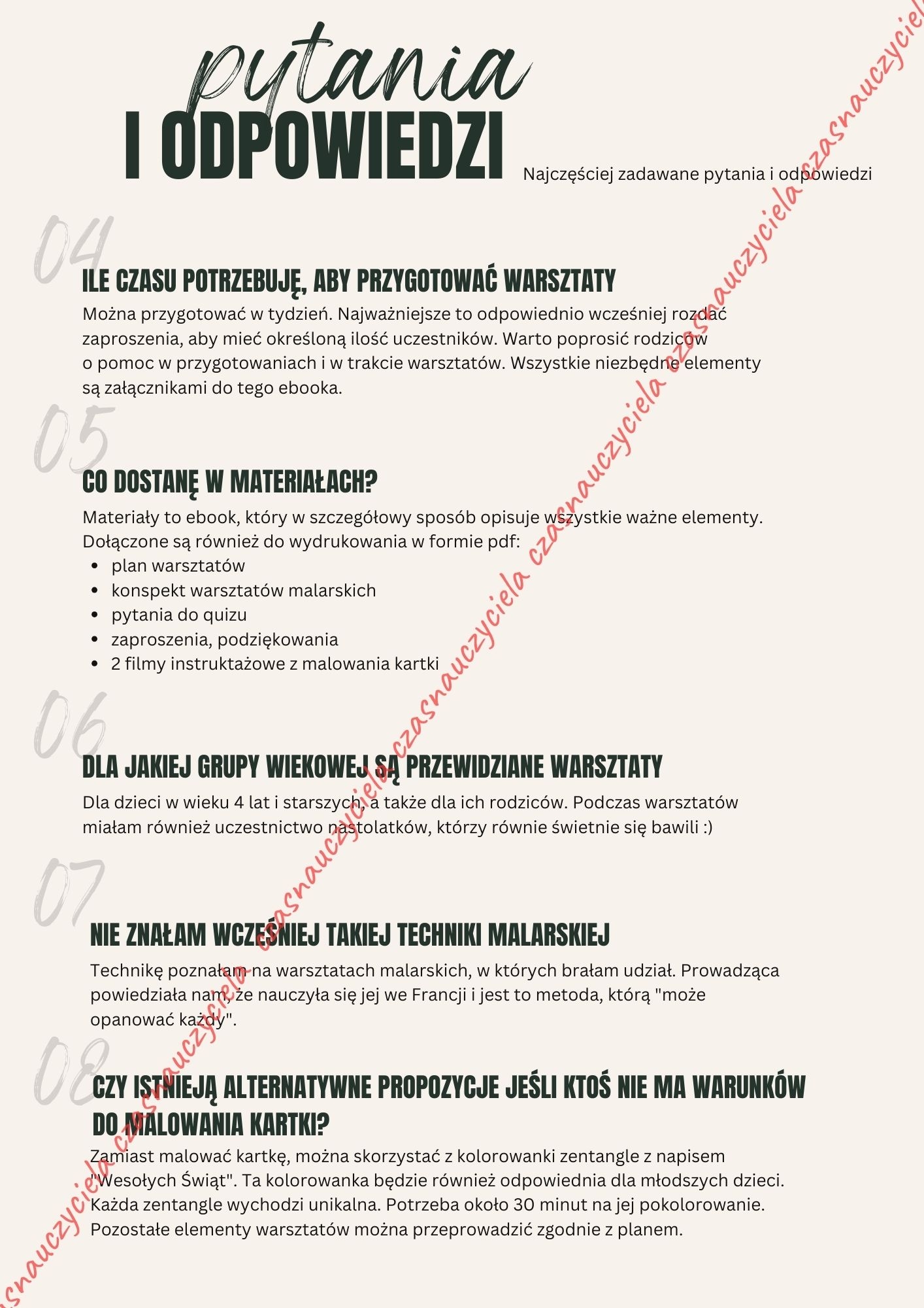 Łatwość i przejrzystość: Wszystkie instrukcje są klarowne i łatwe do zrozumienia, nawet dla osób bez doświadczenia w organizacji warsztatów i bez "talentu do malowania".