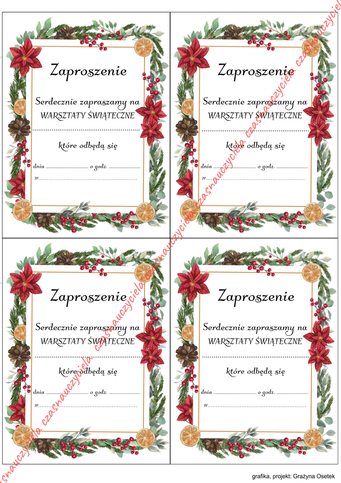 Pliki do wydruku: Zaproszenia, podziękowania, kolorowanka "Wesołych Świąt", konspekt malowania kartki, plan warsztatów, pytania do quizu, Opowieść o zimowej przygodzie.