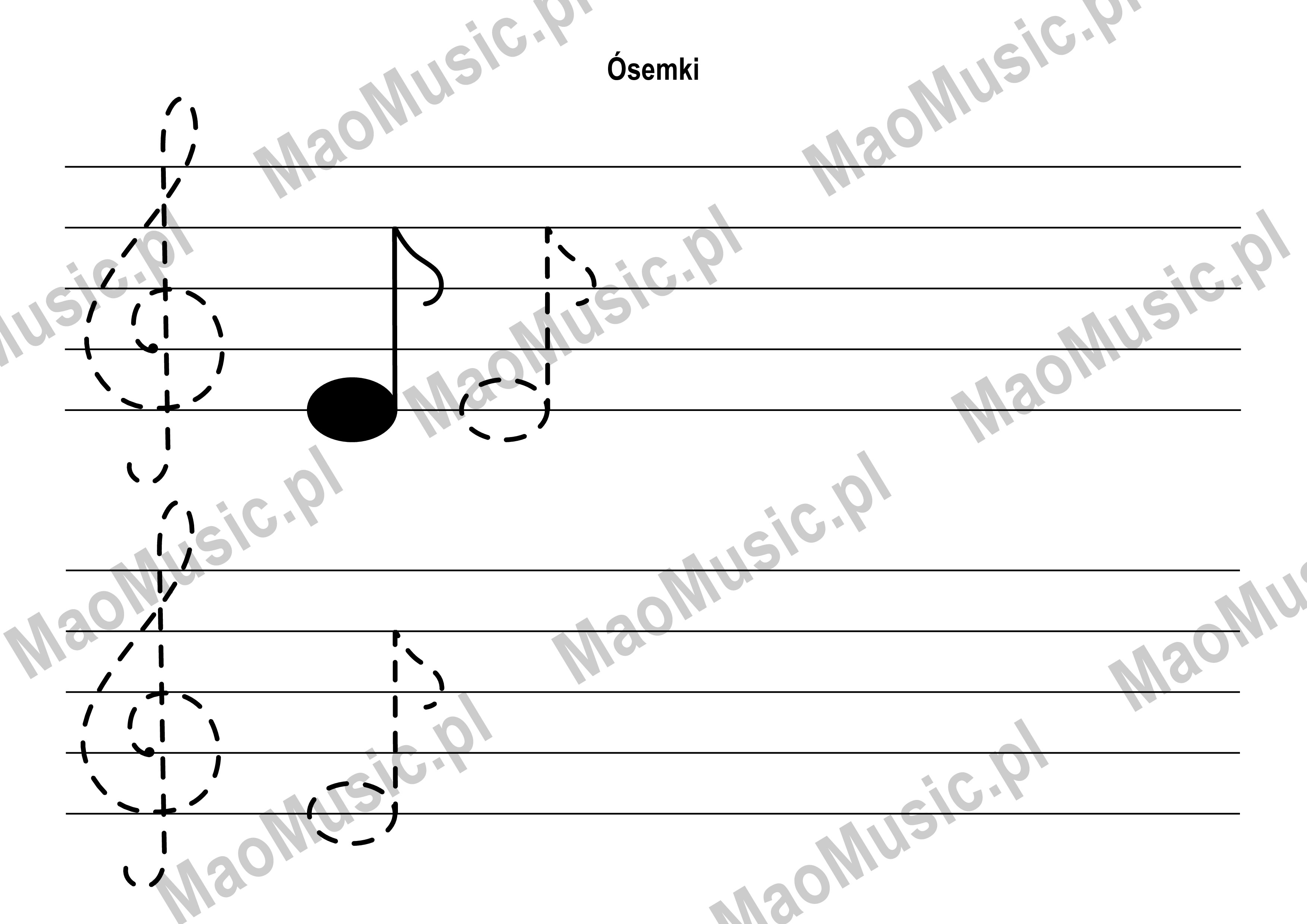 Karta pracy ÓSEMKA w formacie A4 łatwa do wydrukowania, doskonale sprawdzi się zarówno w szkole, jak i podczas nauki w domu. Uczniowie poznają jej kształt, zasady poprawnego rysowania. Celem karty jest wprowadzenie uczniów w podstawy muzyki oraz rozwijanie ich zdolności manualnych.