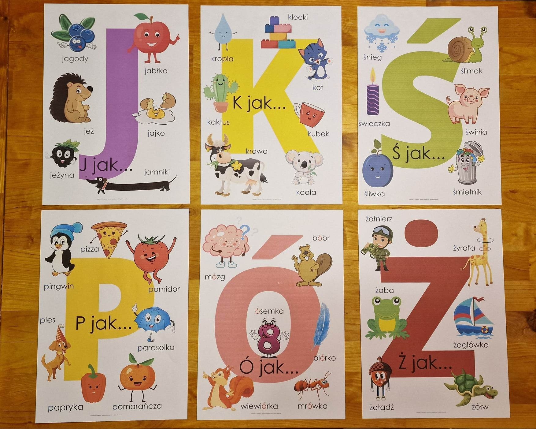 Zestaw zawiera 32 plansze A4 ( 32 litery ). Wesoły alfabet w zabawny sposób zaznajamia dzieci z alfabetem oraz pomaga odnaleźć wyrazy, w których ta literka się pojawia.