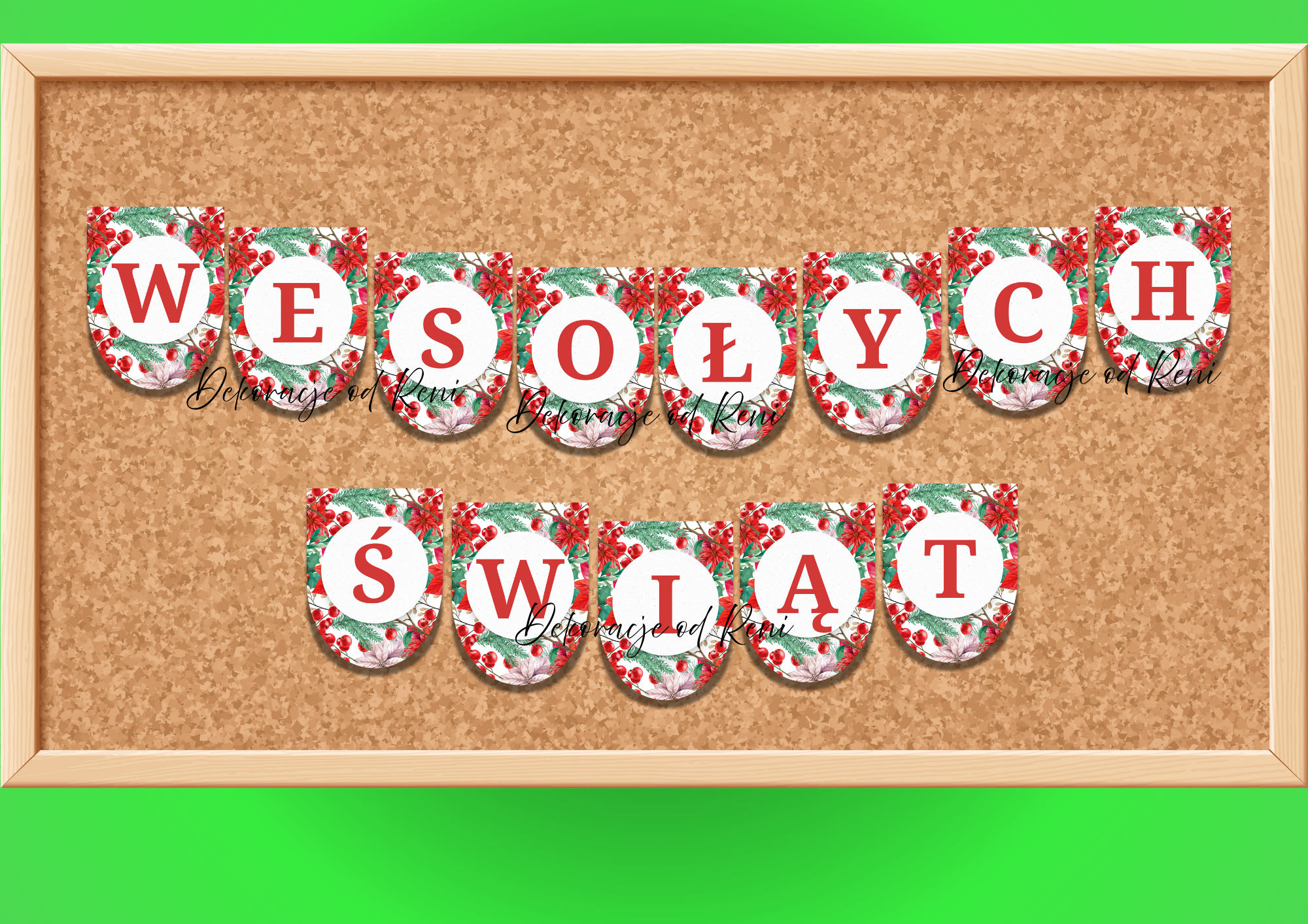 Girlanda WESOŁYCH ŚWIAT to idealny element świątecznej dekoracji dla szkoły lub przedszkola. Każda litera zamieszczona jest na osobnej kartce a4. Zestaw wysyłany jest w pliku pdf. Materiał jest do samodzielnego wydruku.