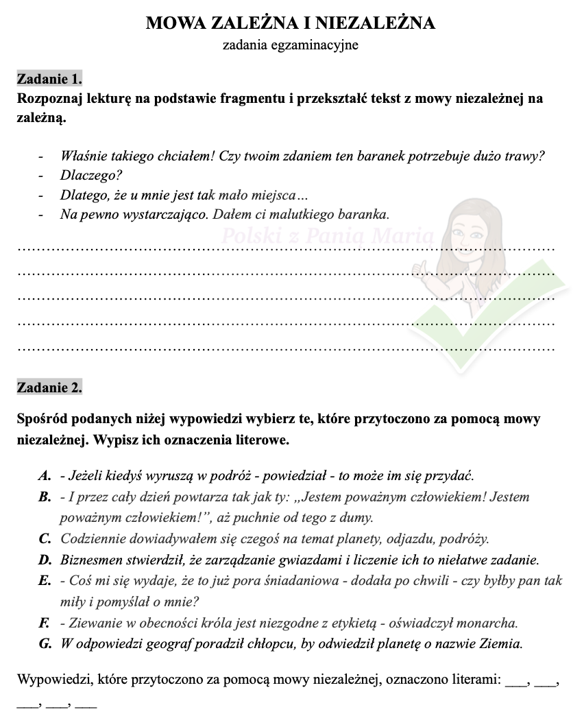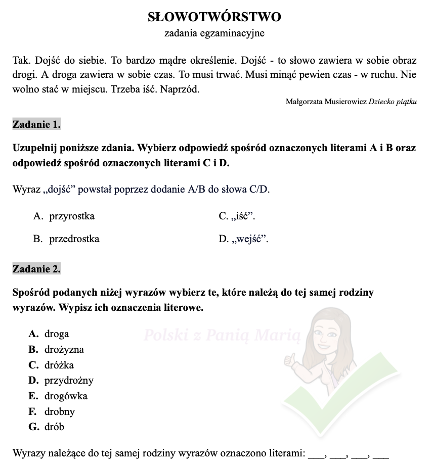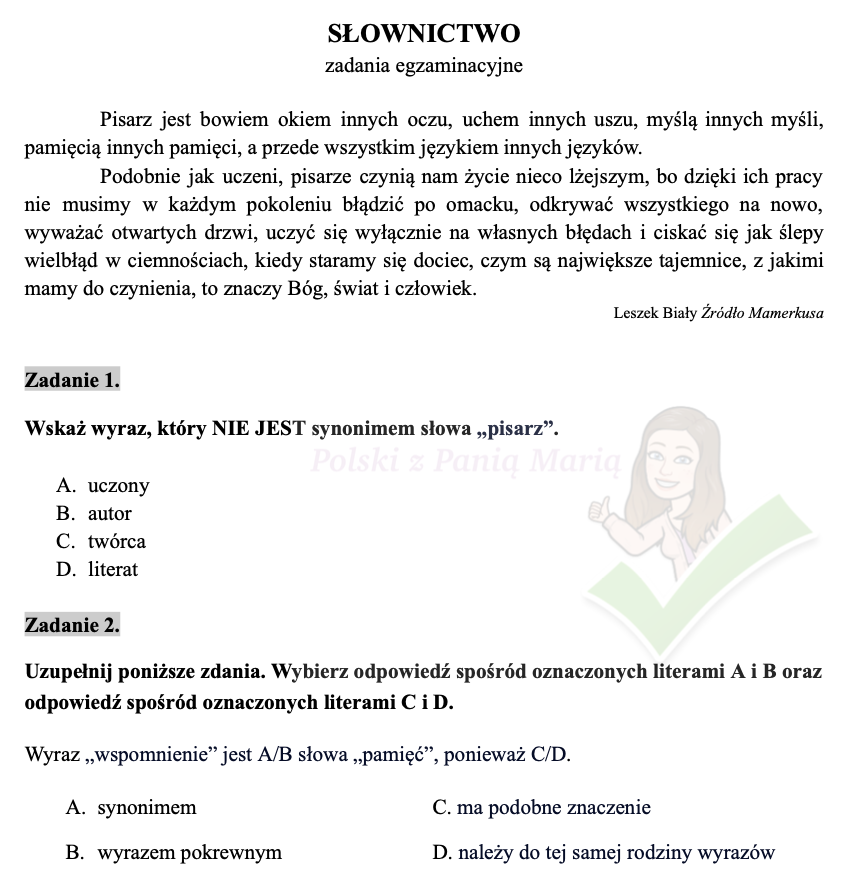 Zestaw kart pracy dotyczących zagadnień językoznawczych obowiązujących na egzaminie ósmoklasisty: