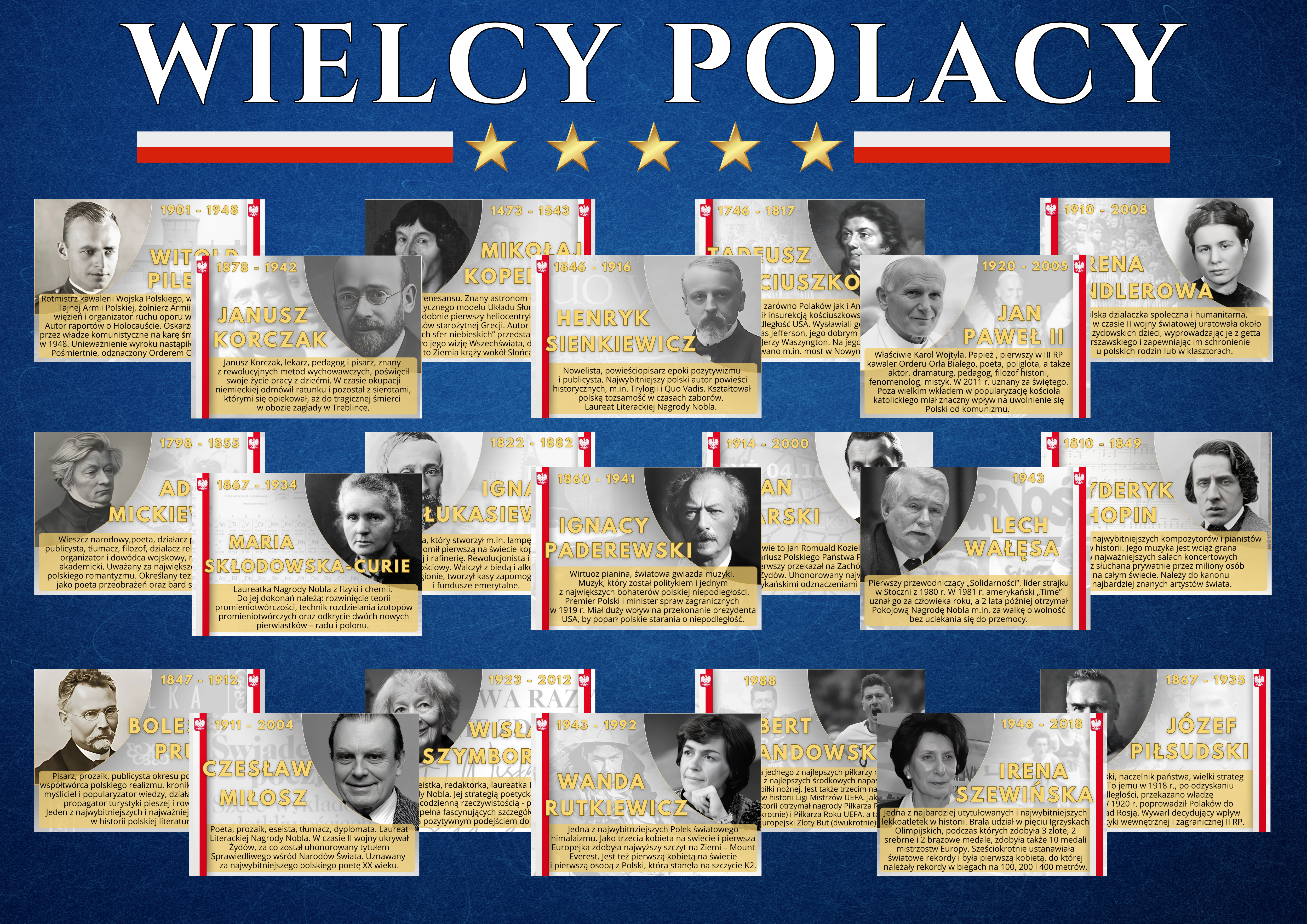 Od naukowców, artystów, bohaterów walk o wolność i sportowców = ich historie uczą i inspirują