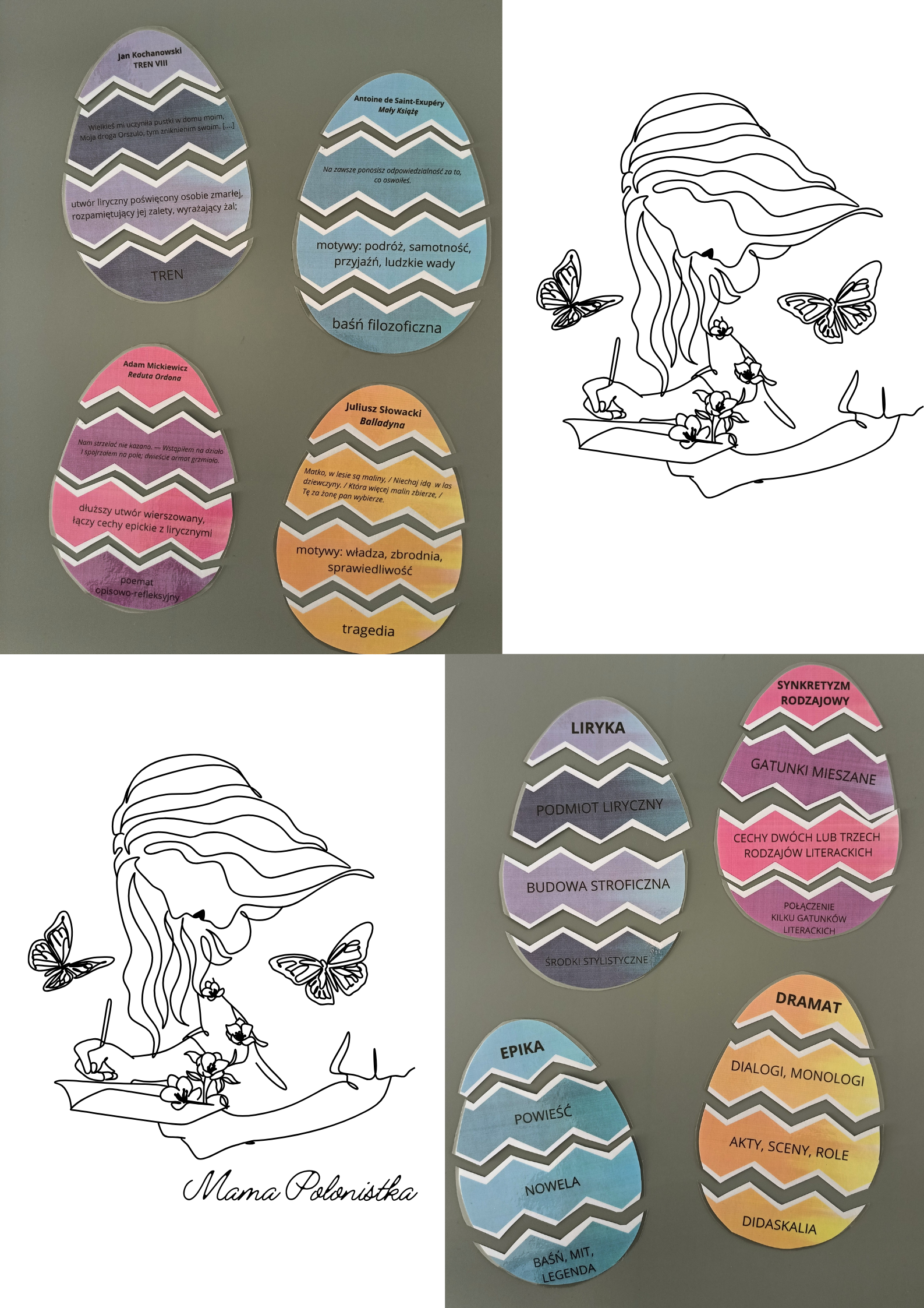 1) pisanki rodzajowe - cechy liryki, epiki, dramatu i gatunków synkretycznych oraz wybrane lektury obowiązkowe z każdego rodzaju (dopasuj cytat, tytuł i autora, motywy i gatunek literacki);