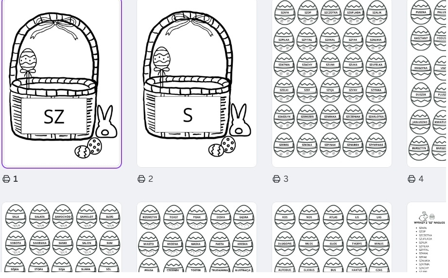 2 duże koszyki z głoską “sz” i “s”,