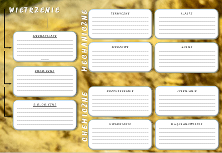 Wietrzenie - Karta pracy - notatnik do uzupełnienia przez uczniów. Materiał przeznaczony do drukowania oraz wyświetlania na ekranie.