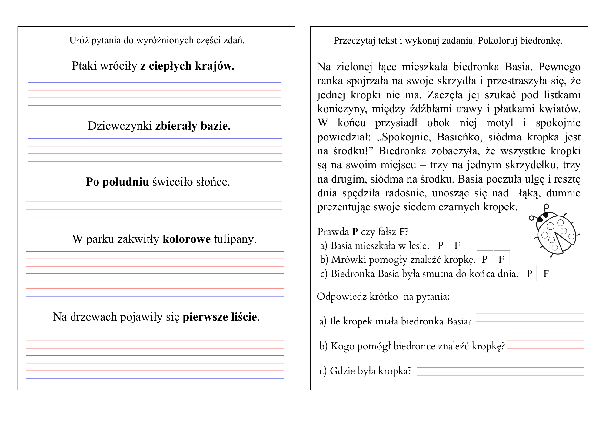 kolorowanie obrazka zgodnie z treścią układanie pytań