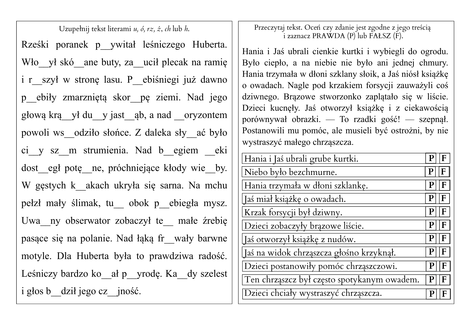 uzupełnianie tekstu