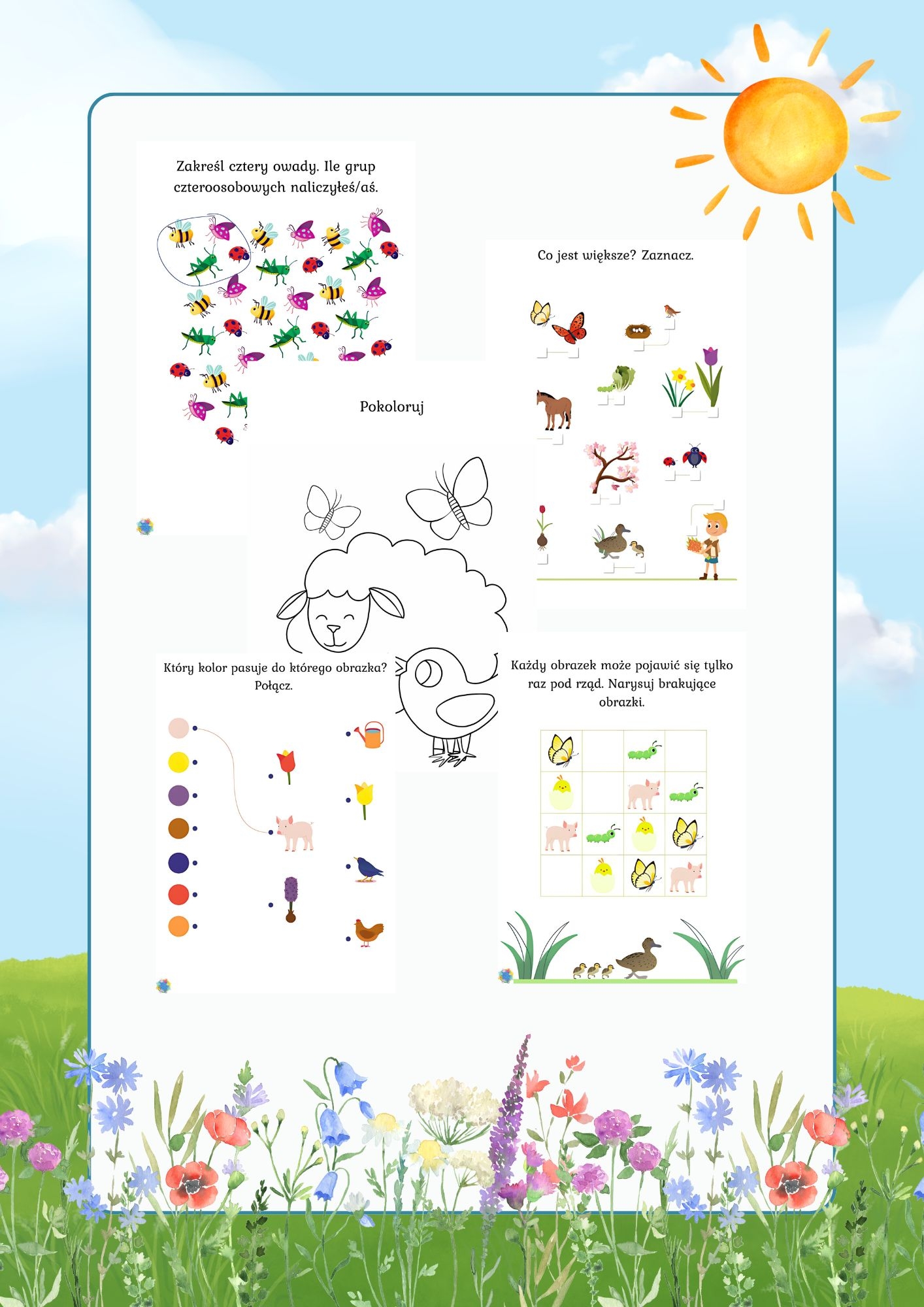 Wiosenne Karty Pracy to starannie przygotowany zestaw zadań dla przedszkolaków, który rozwija, uczy i bawi!