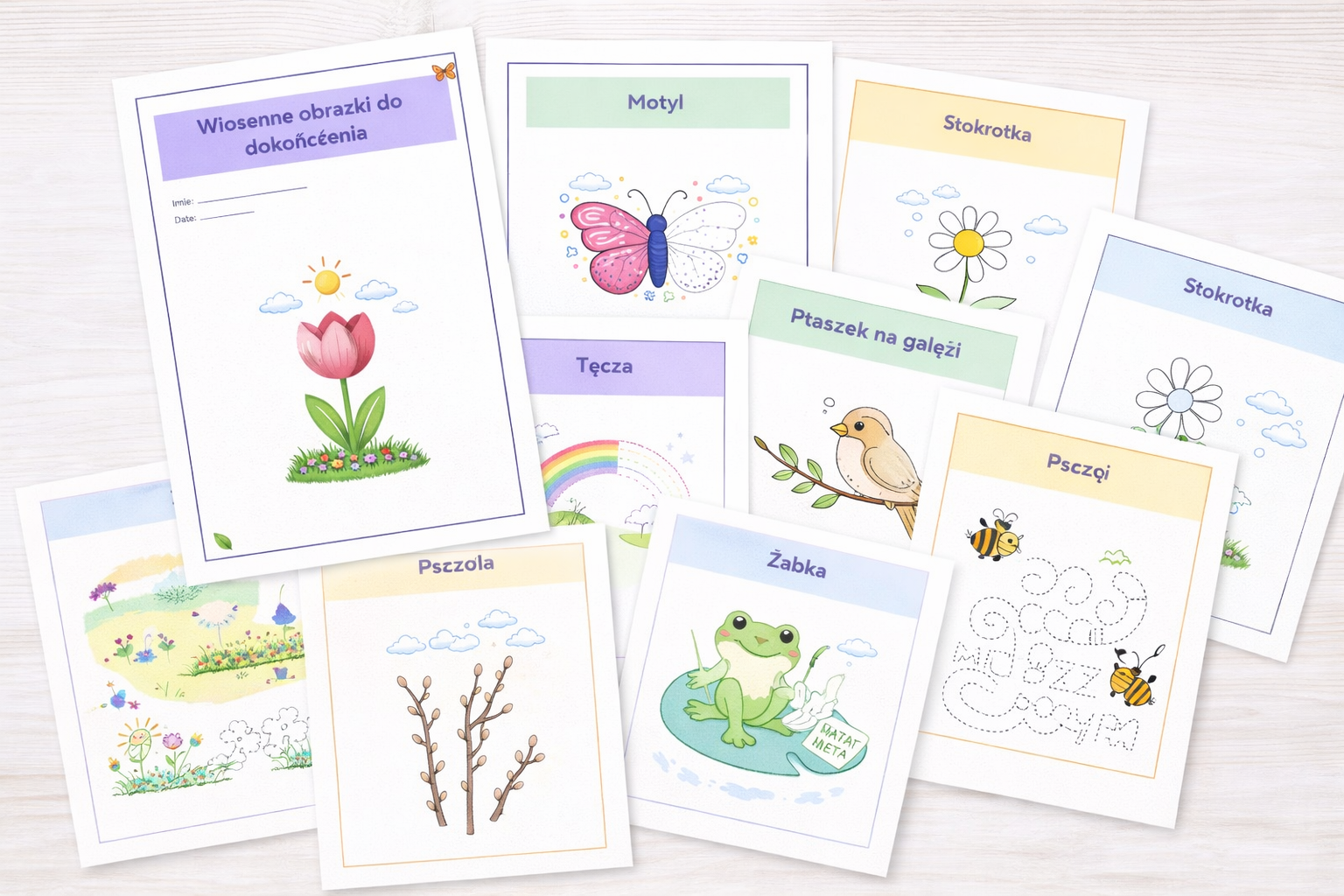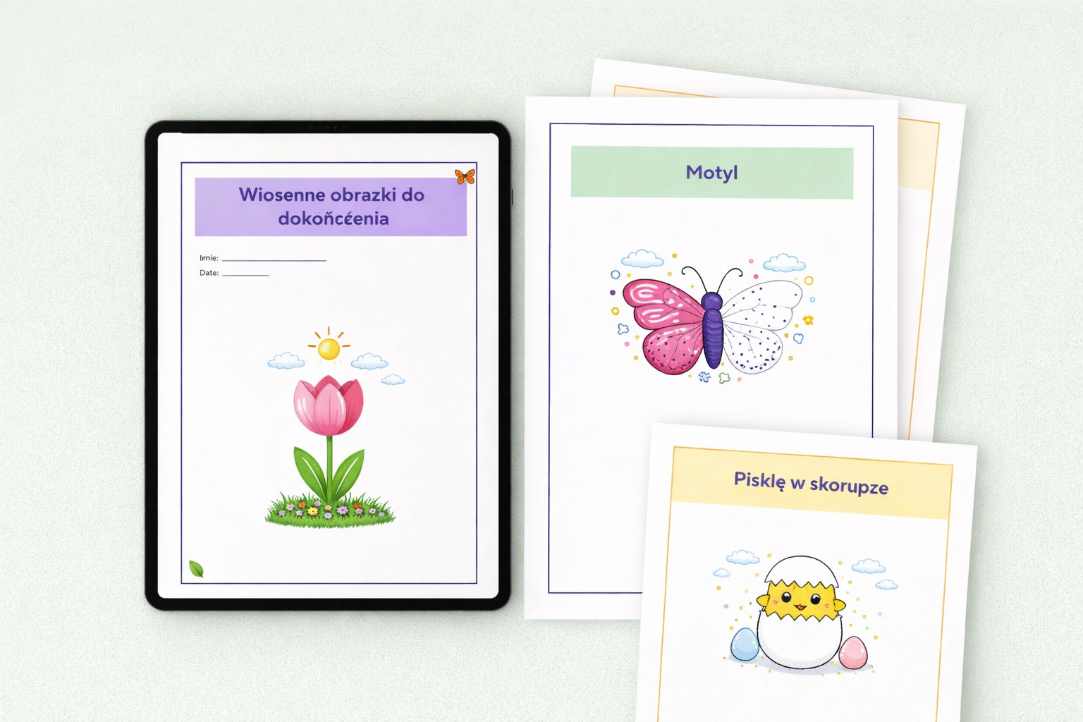 A wszystko to w ciepłej, pastelowej, wiosennej oprawie graficznej, która przyciąga uwagę i zachęca do pracy 🌸