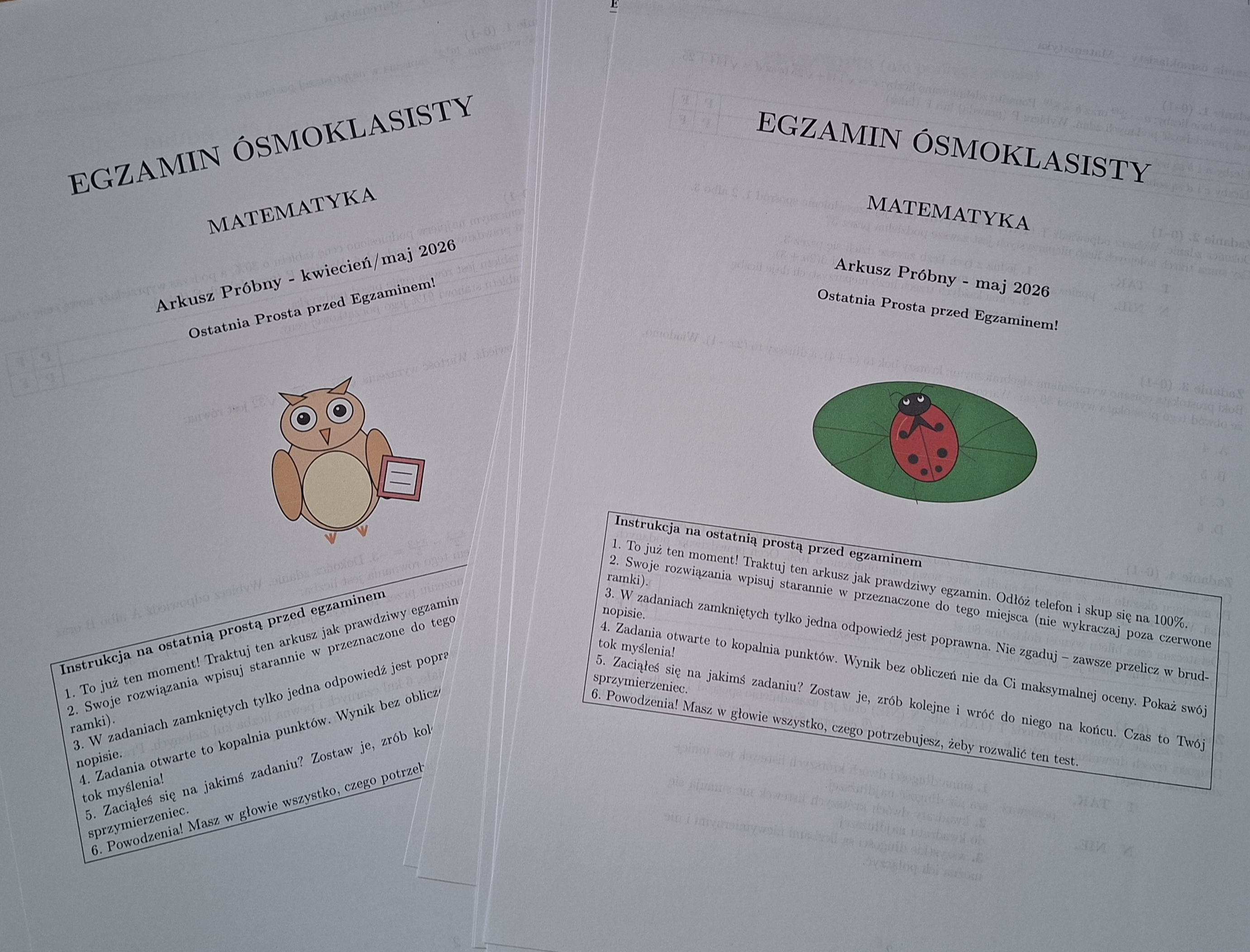 Przygotowałam pakiet dwóch całkowicie autorskich arkuszy próbnych z matematyki. To idealny materiał na "ostatnią prostą" – świetnie sprawdzi się na lekcjach powtórzeniowych lub zajęciach indywidualnych.