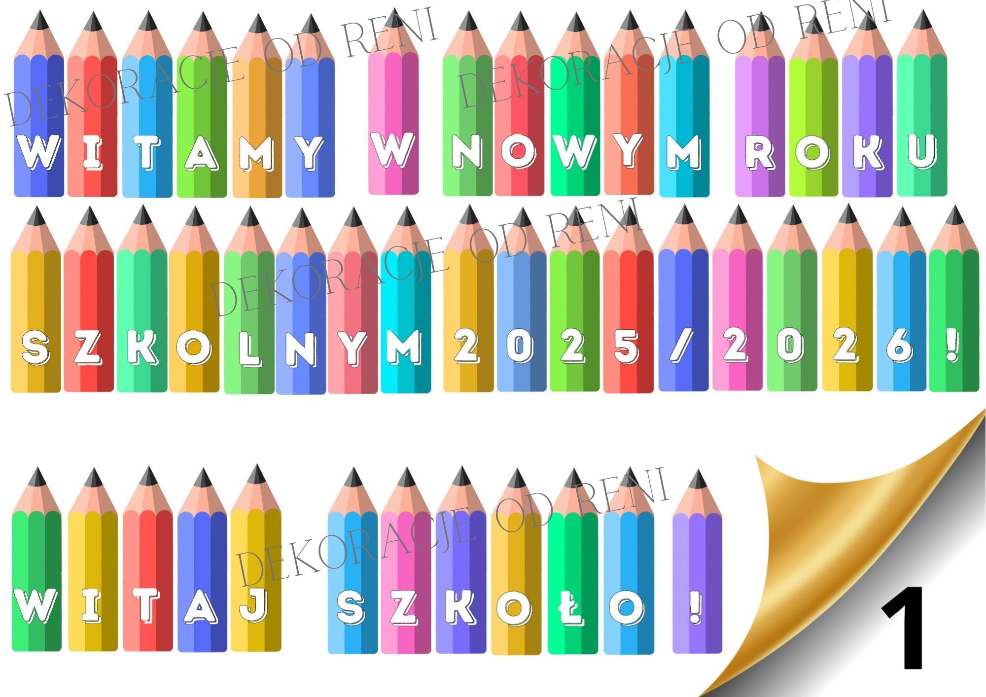 Dwa napisy na kolorowych kredkach. Każda kredka na oddzielnej kartce A4.