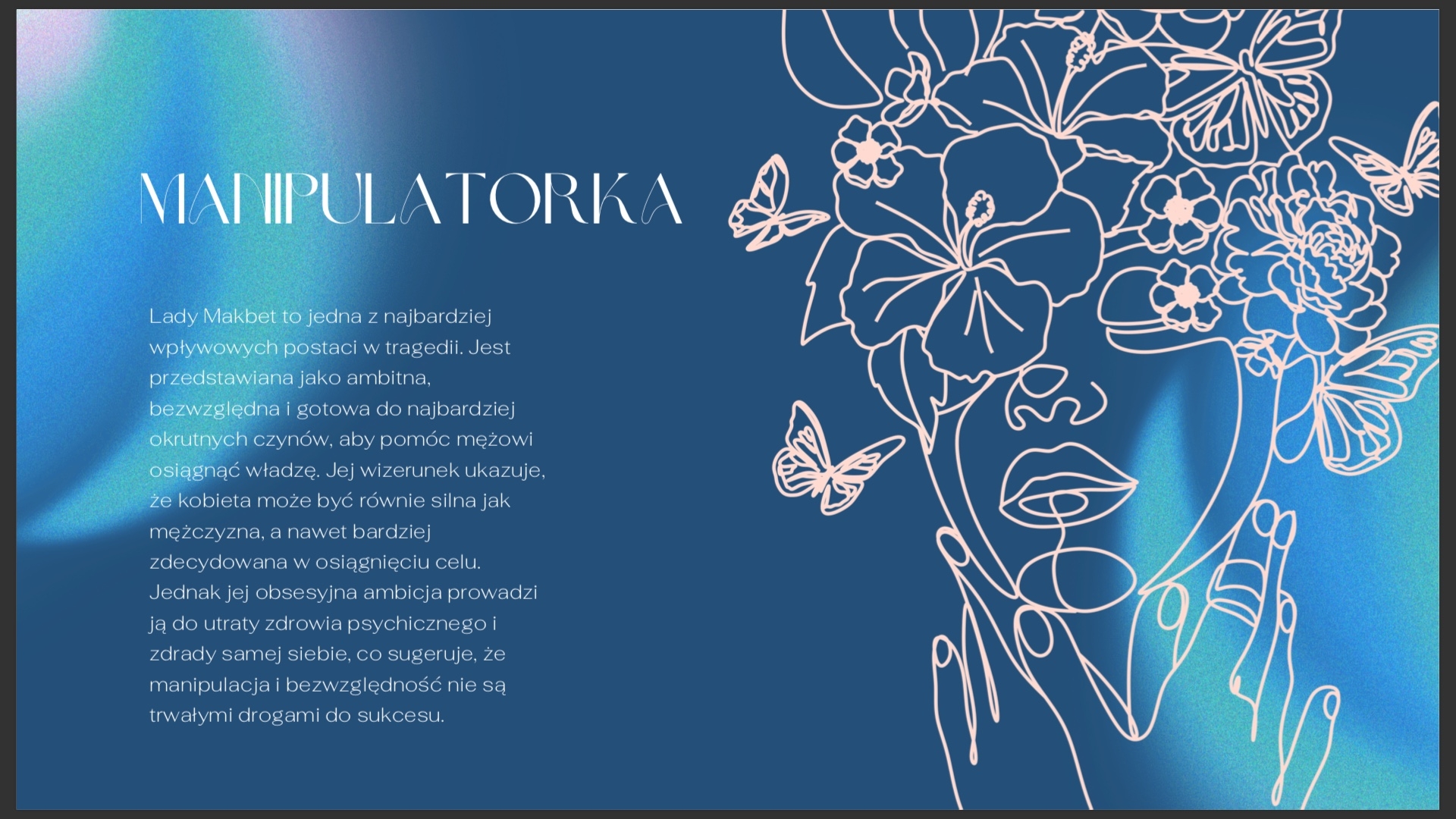 Opracowanie pytania jawnego z ,,Makbeta" w pięknej prezentacji Canva.