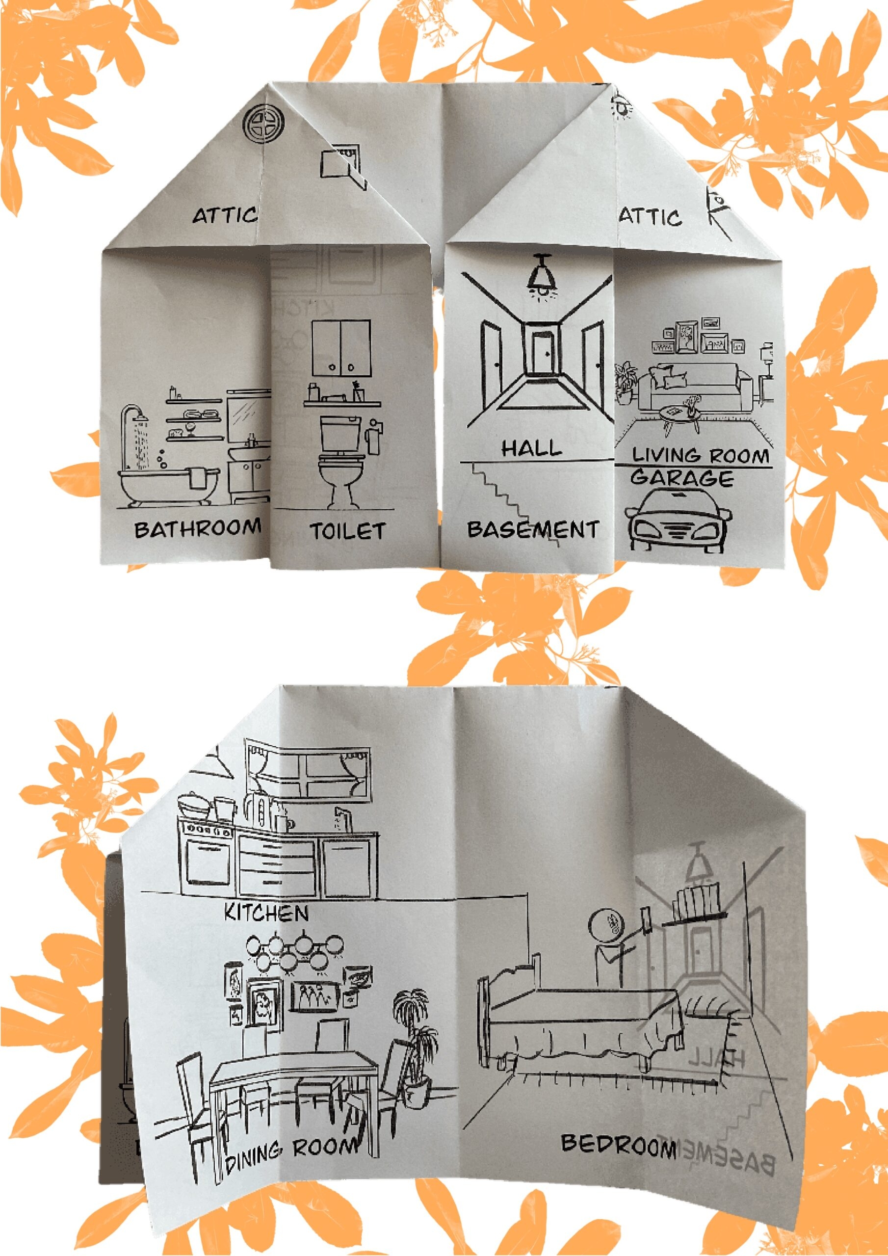 Materiał w postaci domku z pomieszczeniami do złożenia z jednej kartki A4. Można go potraktować jako gotową wklejkę do zeszytu albo punkt startowy do innych aktywności, np. kolorowania wg wskazówek nauczyciela lub meblowania domu i opisywania pomieszczeń przez uczniów. Jestem ciekawa Waszych wersji tego domku i Waszych pomysłów na wykorzystanie tego materiału na lekcjach, a jest ich na prawdę sporo! Link do filmiku, na którym widać jak wydrukować i złożyć domek: https://www.youtube.com/watch?v=A9ZtWlMMFko Jak widzisz, to banalnie proste!