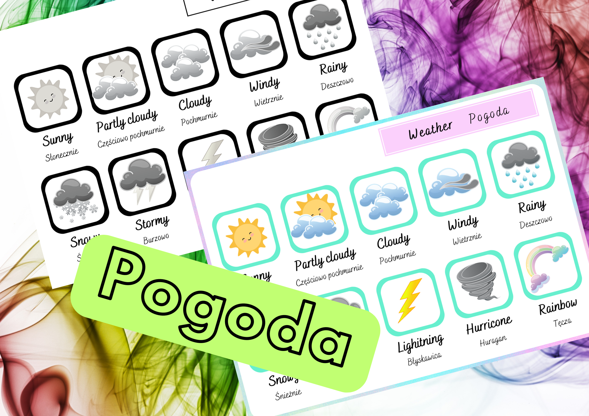 Wklejka o pogodzie - angielska wklejka do zeszytu - PLAKAT Plakat - wklejka w kolorze oraz czarno - biała Możliwość wydruku do rozmiaru A3