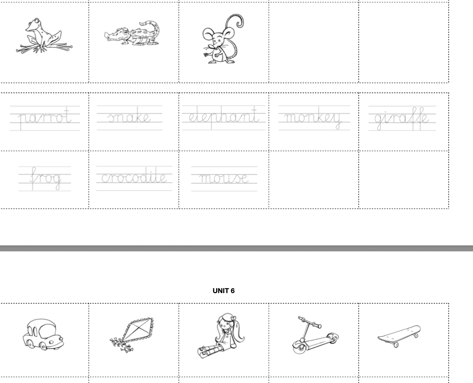 WKLEJKA DO ZESZYTU SŁOWEK Z KSIĄŻKI TIGER AND FRIENDS 1. ZAWIERA SŁÓWKA Z KSIĄŻKI OBRAZEK + NAPIS DO POPRAWIENIA PO ŚLADZIE