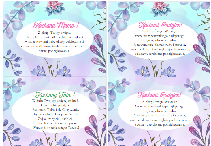 Wklejka z życzeniami do laurki z okazji dnia Mamy i Taty