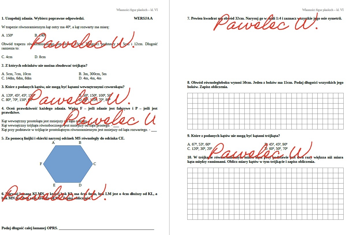 WERSJA A - 2 strony z zadaniami.