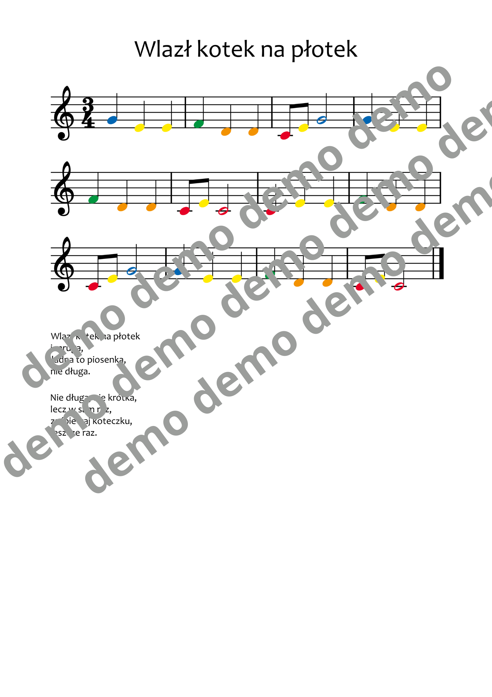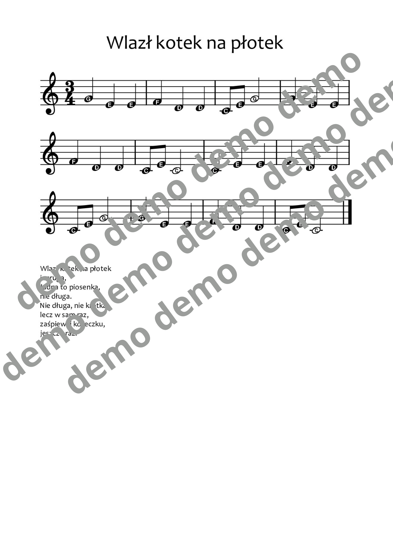 Nuty do piosenki Wlazł kotek na płotek, w dwóch pratycznych formach: