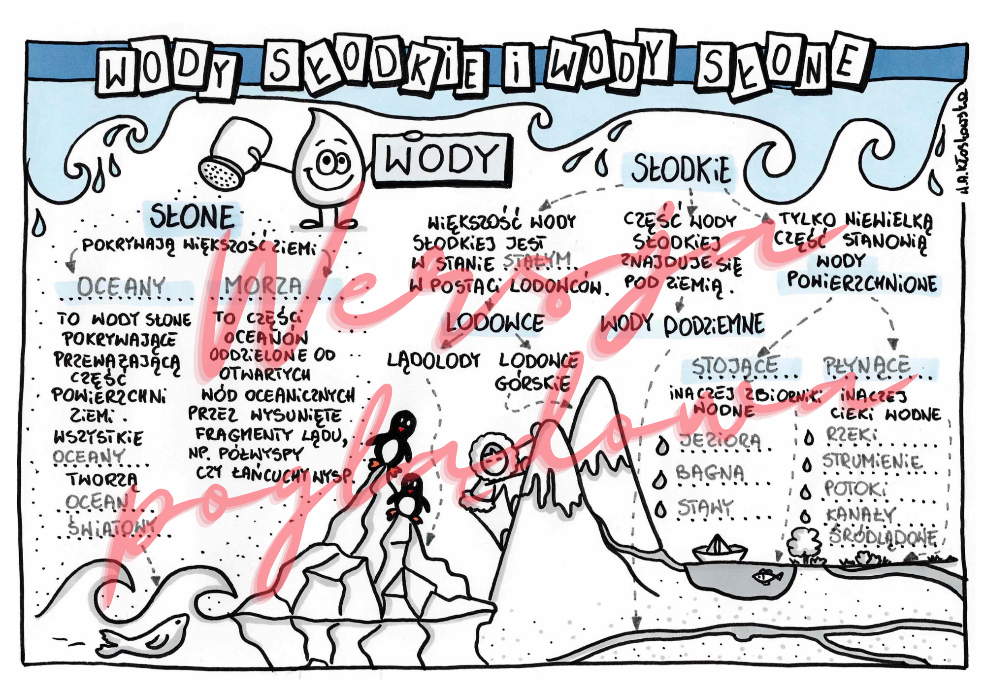 Wody słodkie i wody słone - przyroda kl. 4 -wypełniona karta pracy