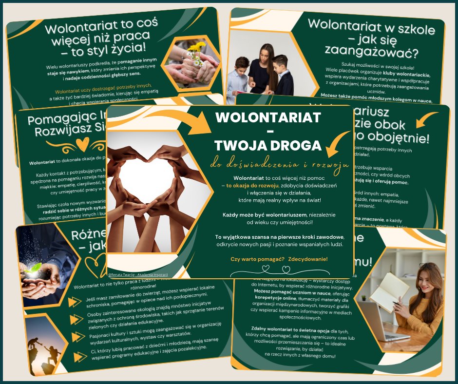 Czy szukacie inspirujących materiałów, które pomogą Wam zaangażować młodzież w działania społeczne i wesprzeć ich rozwój osobisty oraz zawodowy? Mamy dla Was wyjątkowy ZESTAW EDUKACYJNY O WOLONTARIACIE, który pomoże Wam efektywnie wprowadzić uczniów w świat pomagania!