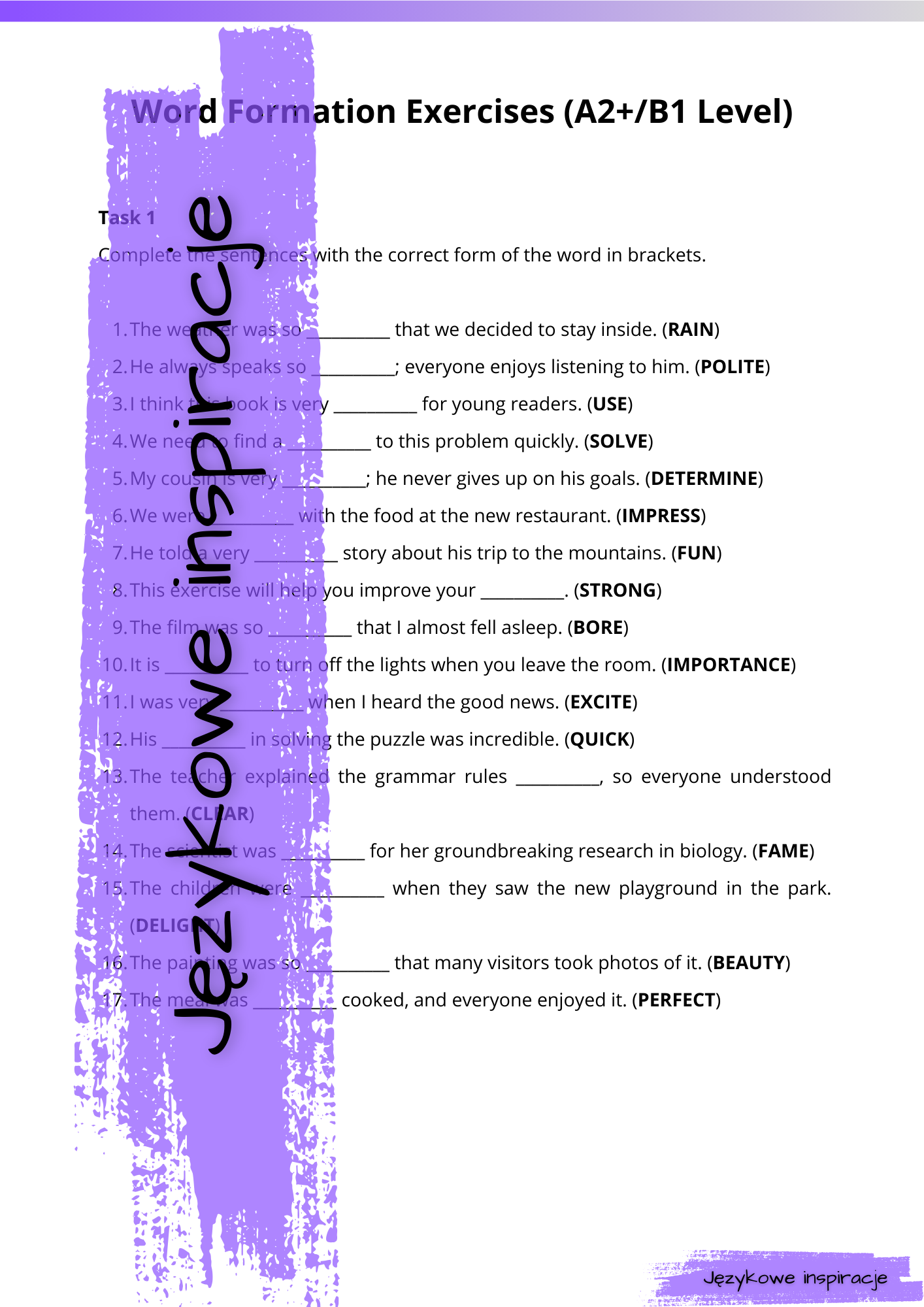 Chcesz pomóc swoim uczniom w rozwinięciu umiejętności Word Formation? Mamy dla Ciebie dwa zestawy kart pracy, które doskonale sprawdzą się na różnych poziomach zaawansowania! 🌟