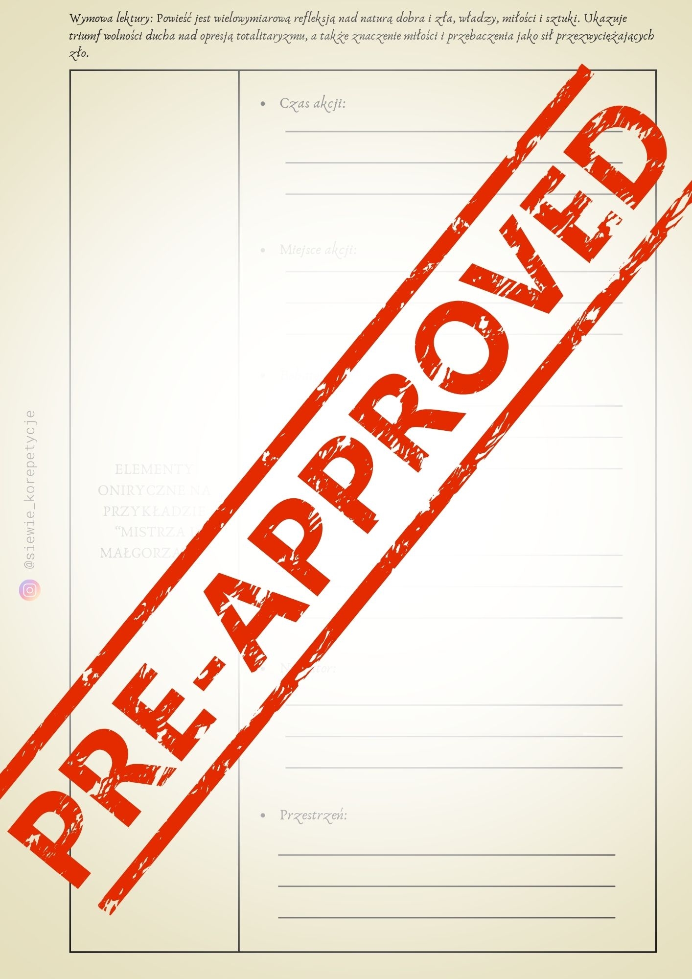 tabelę z wymienionymi elementami świata przedstawionego z: “Sklepów cynamonowych”, “Mistrza i Małgorzaty”, “Małej apokalipsy” do samodzielnego opisania