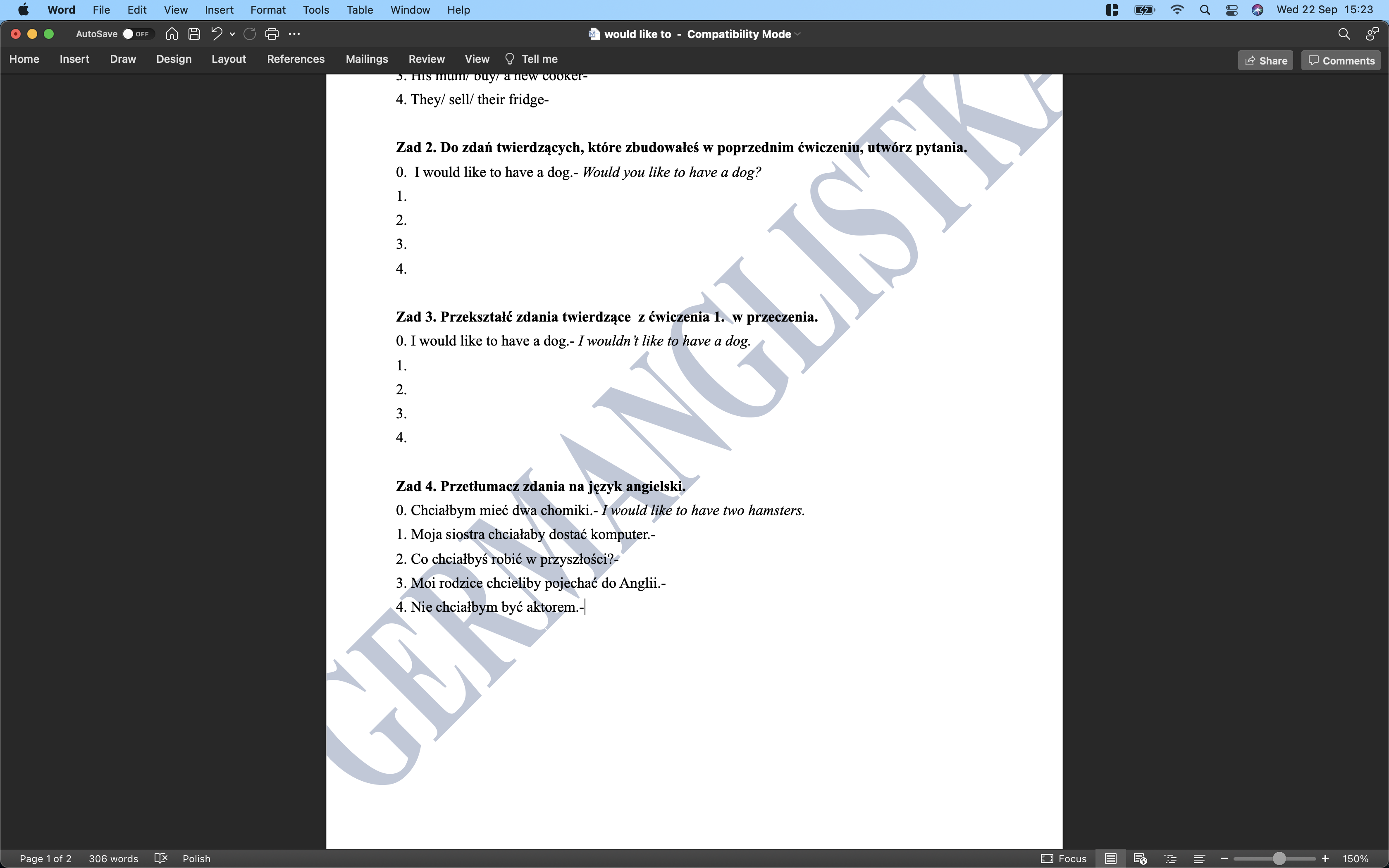 Would like to- 4 ćwiczenia utrwalające z kluczem