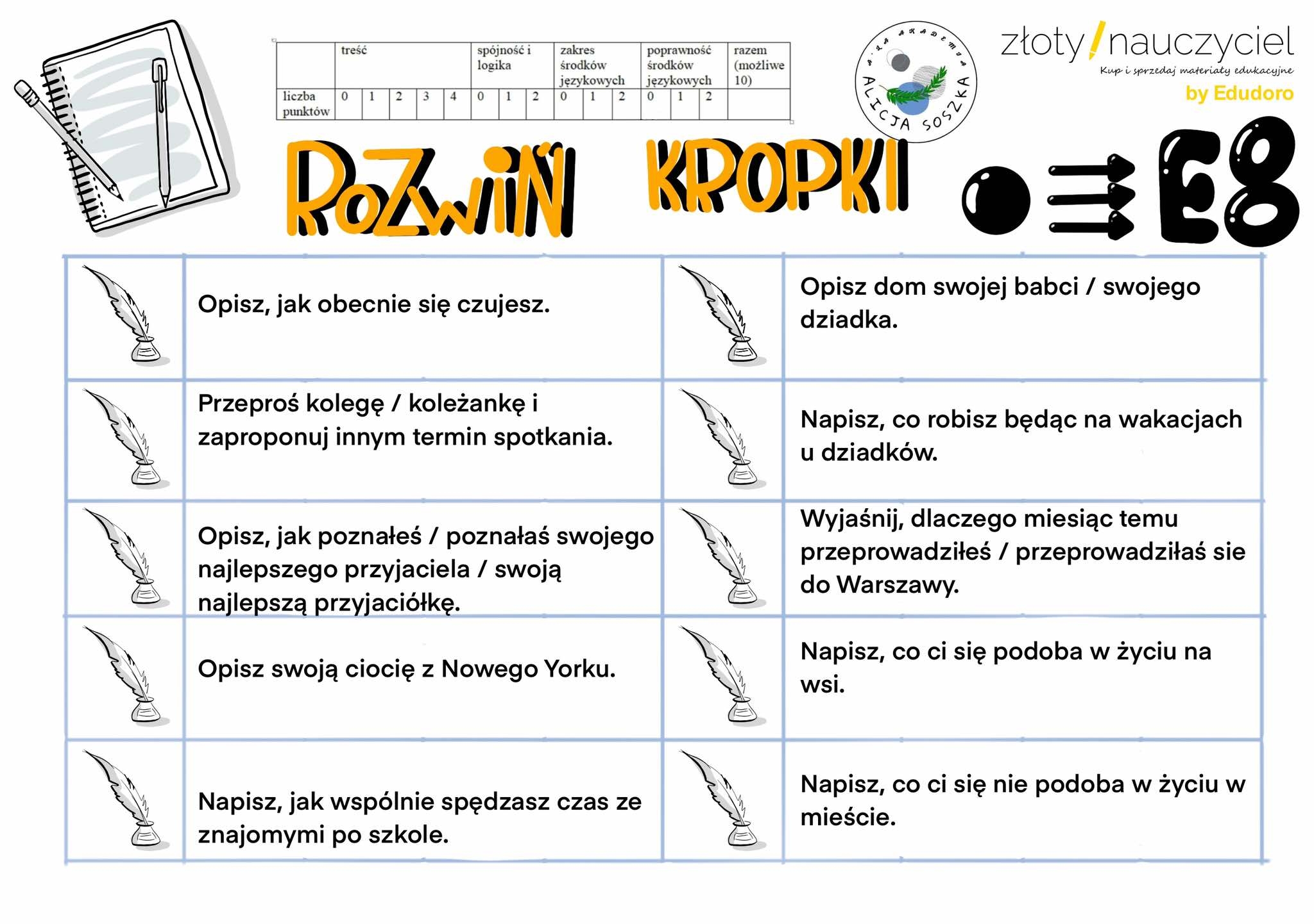 - Rozwijanie umiejętności pisania w różnych formach