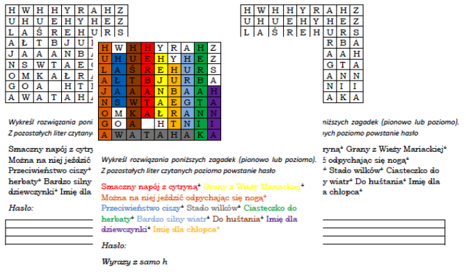 Zapraszam do zakupu wykreślanki z hasłem: Wyrazy z samo h dla klasy 1, którą można wykorzystać po wprowadzeniu litery h. Plik zawiera również rozwiązanie.