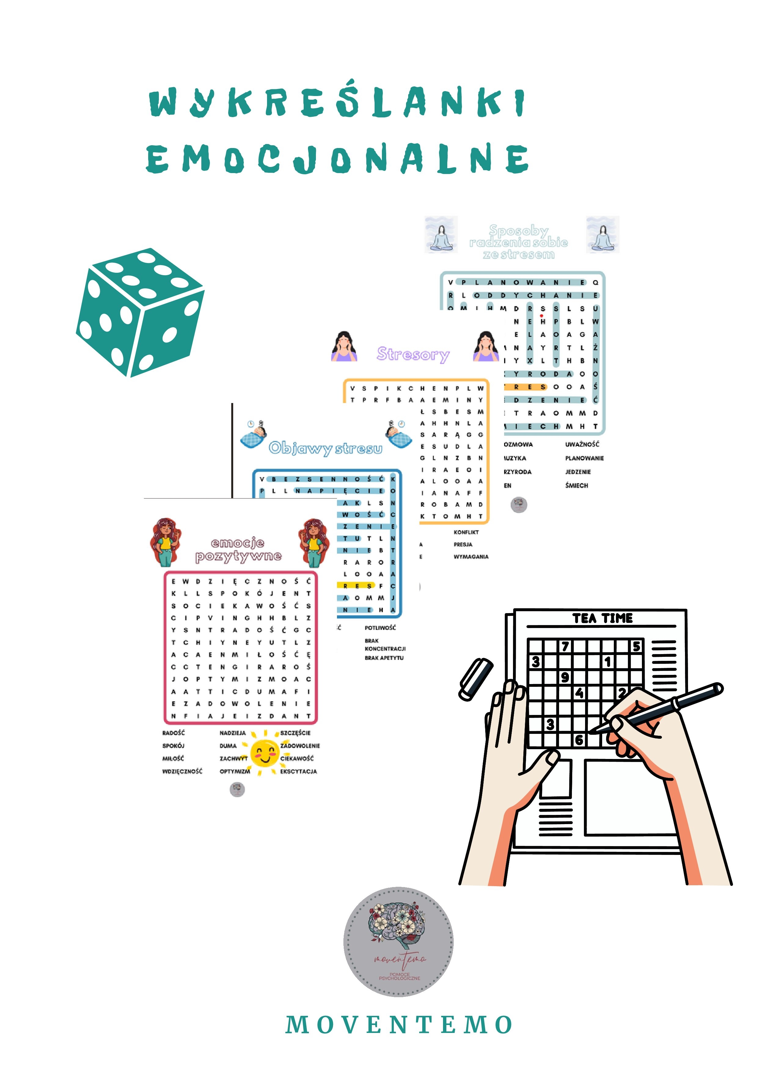 Pakiet wykreślanek jest to narzędzie zawierające różnorodne wykreślanki nawiązujące do emocji i stanów emocjonalnych. Pakiet ma za zadanie stanowić przerywnik podczas zajęć, jak również stanowić świetny punkt wyjściowy do rozmowy o emocjach.