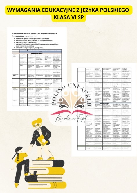 Ten materiał to starannie przygotowane wymagania edukacyjne dla klasy VI z języka polskiego, zgodne z podstawą programową i aktualnymi przepisami prawa oświatowego. Kupując go: