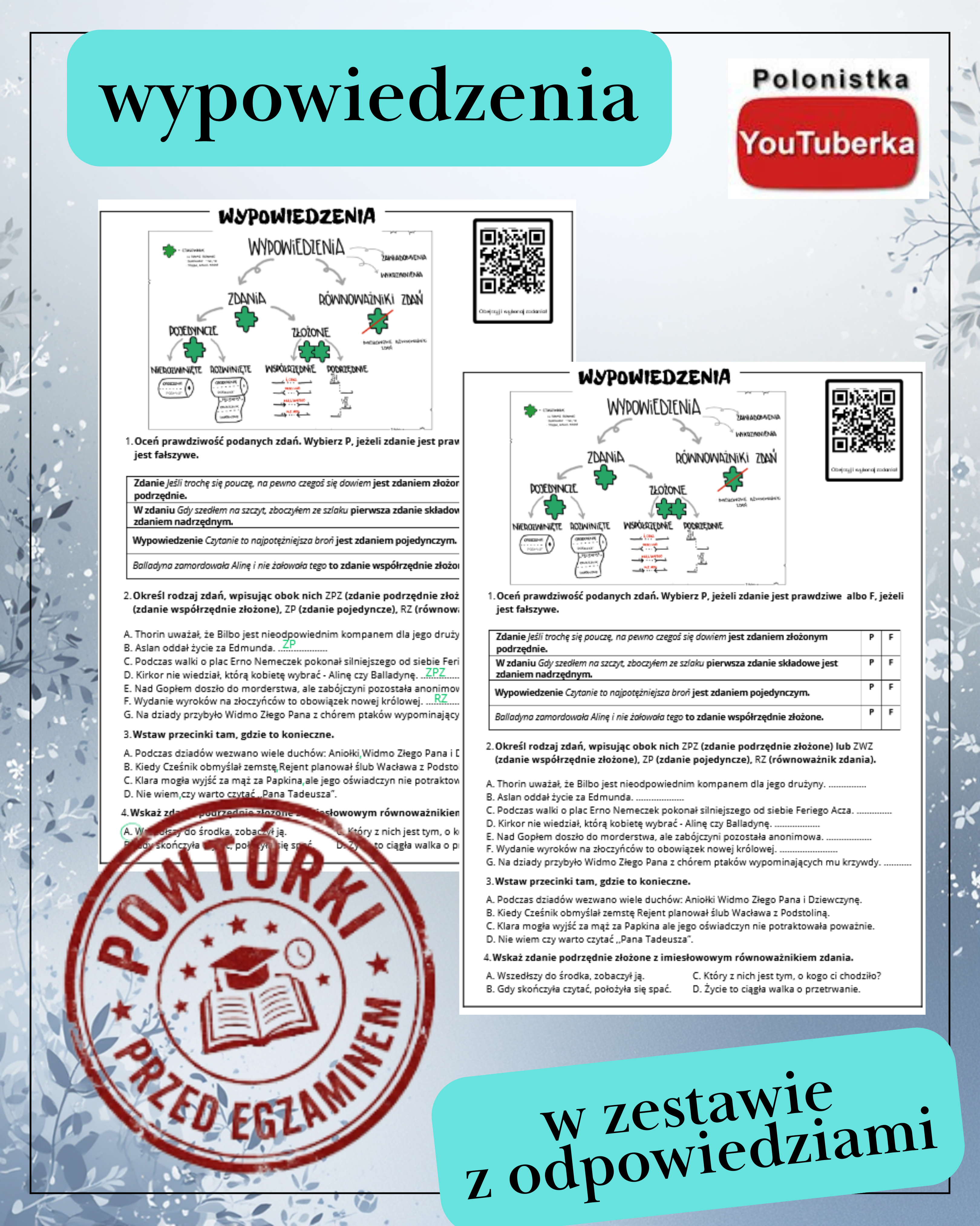 Kilka zadań typu egzaminacyjnego idealne na szybkie powtórzenie.