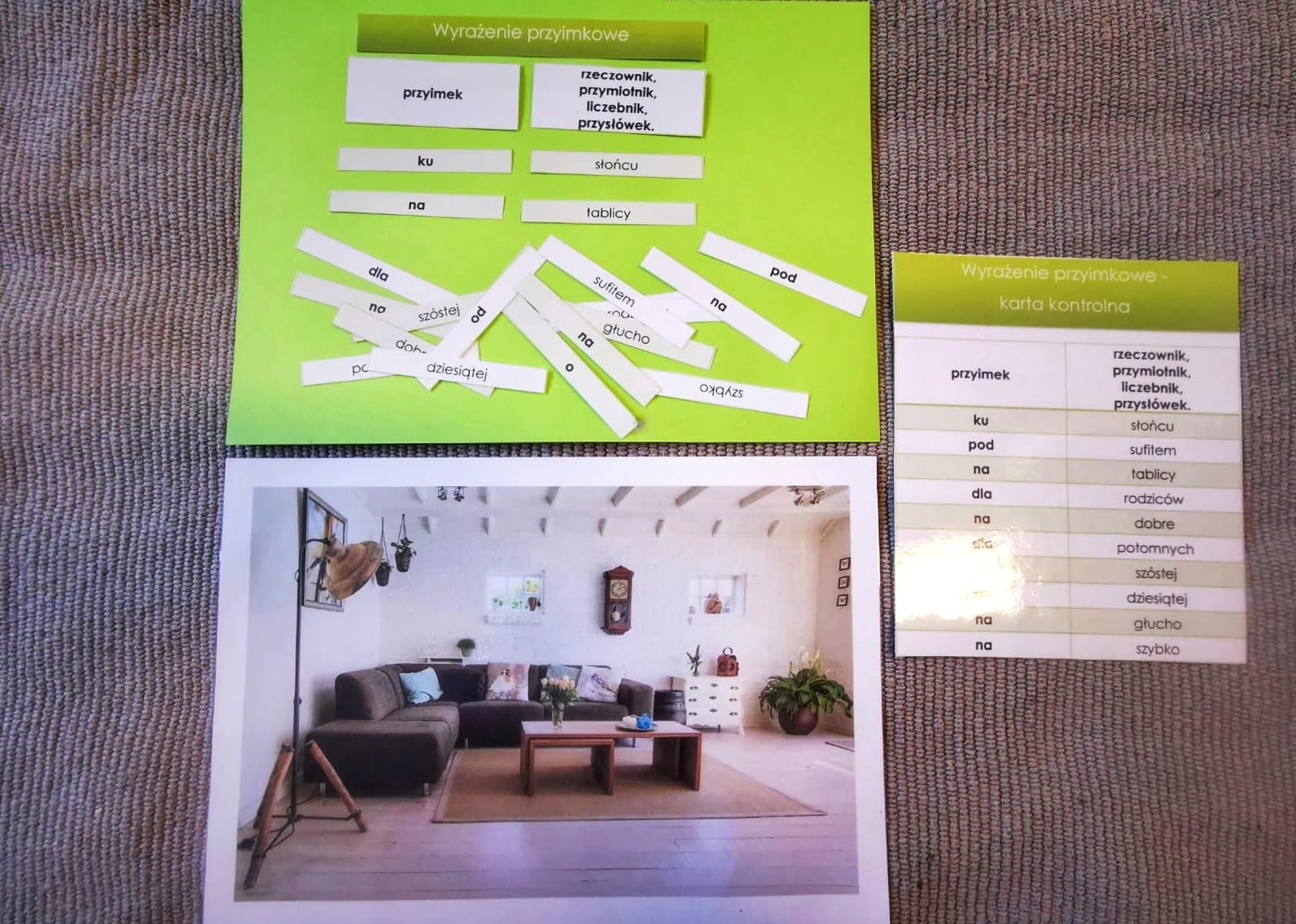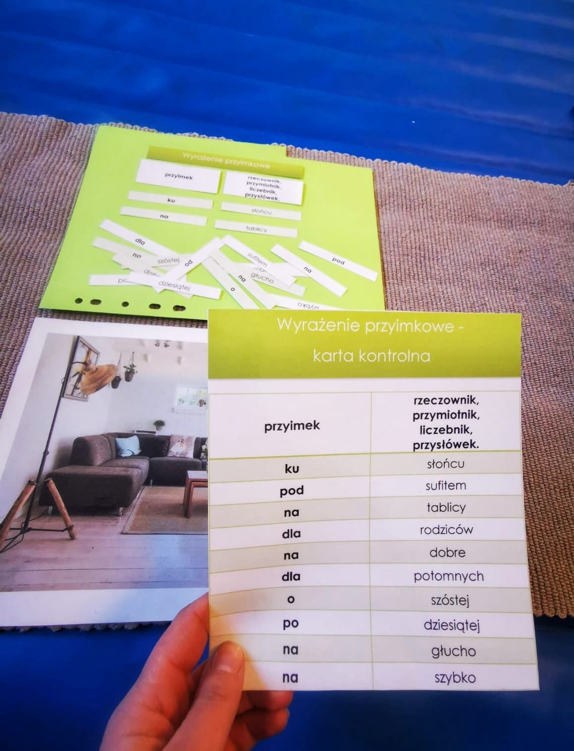 Materiał zawiera tabelkę z przyimkami i wyrażeniami przyimkowymi.