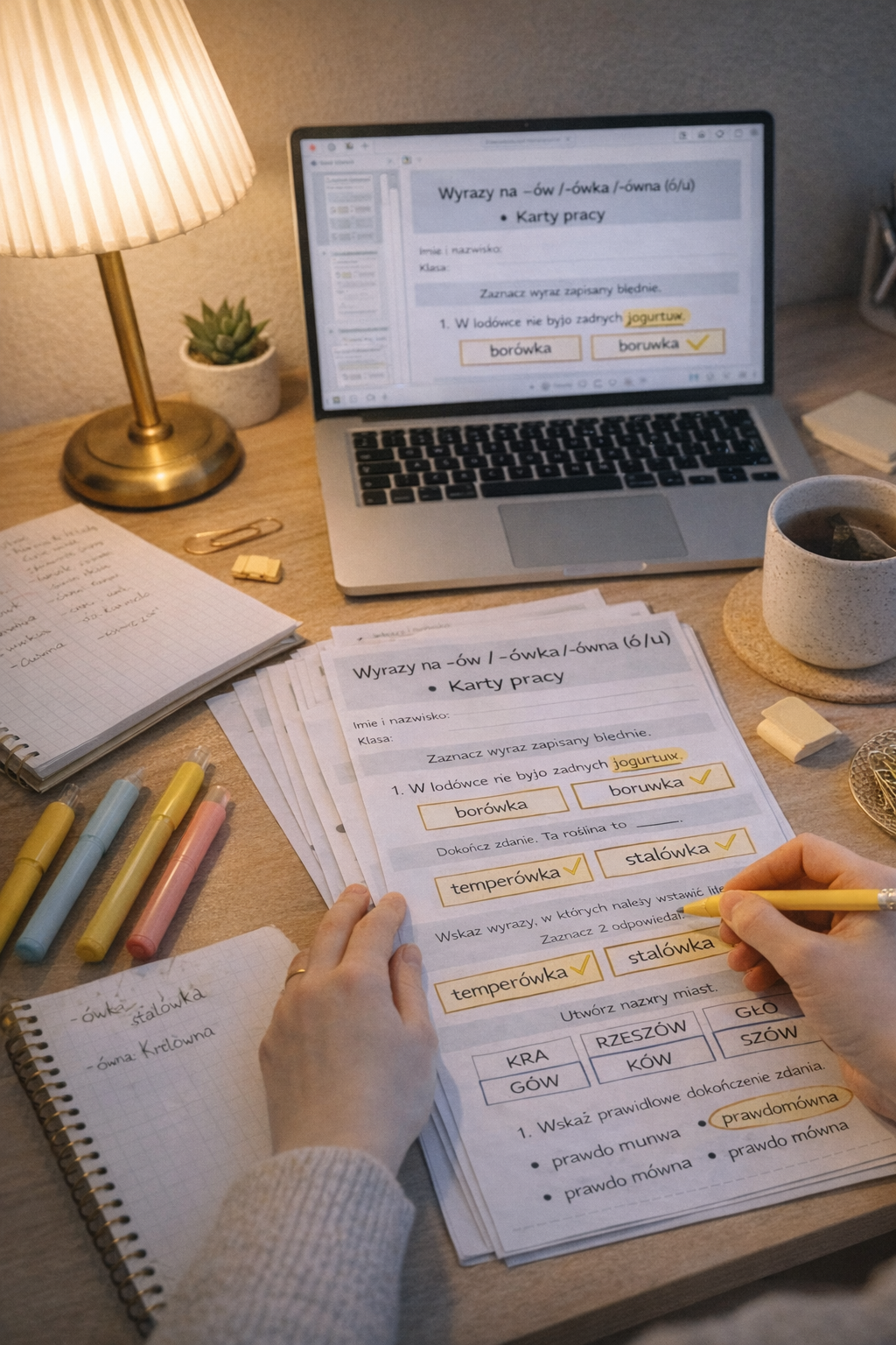 Chcesz, żeby uczniowie naprawdę ogarnęli końcówki typu: -ów, -ówka, -ówna, a nie strzelali na chybił-trafił? 🎯