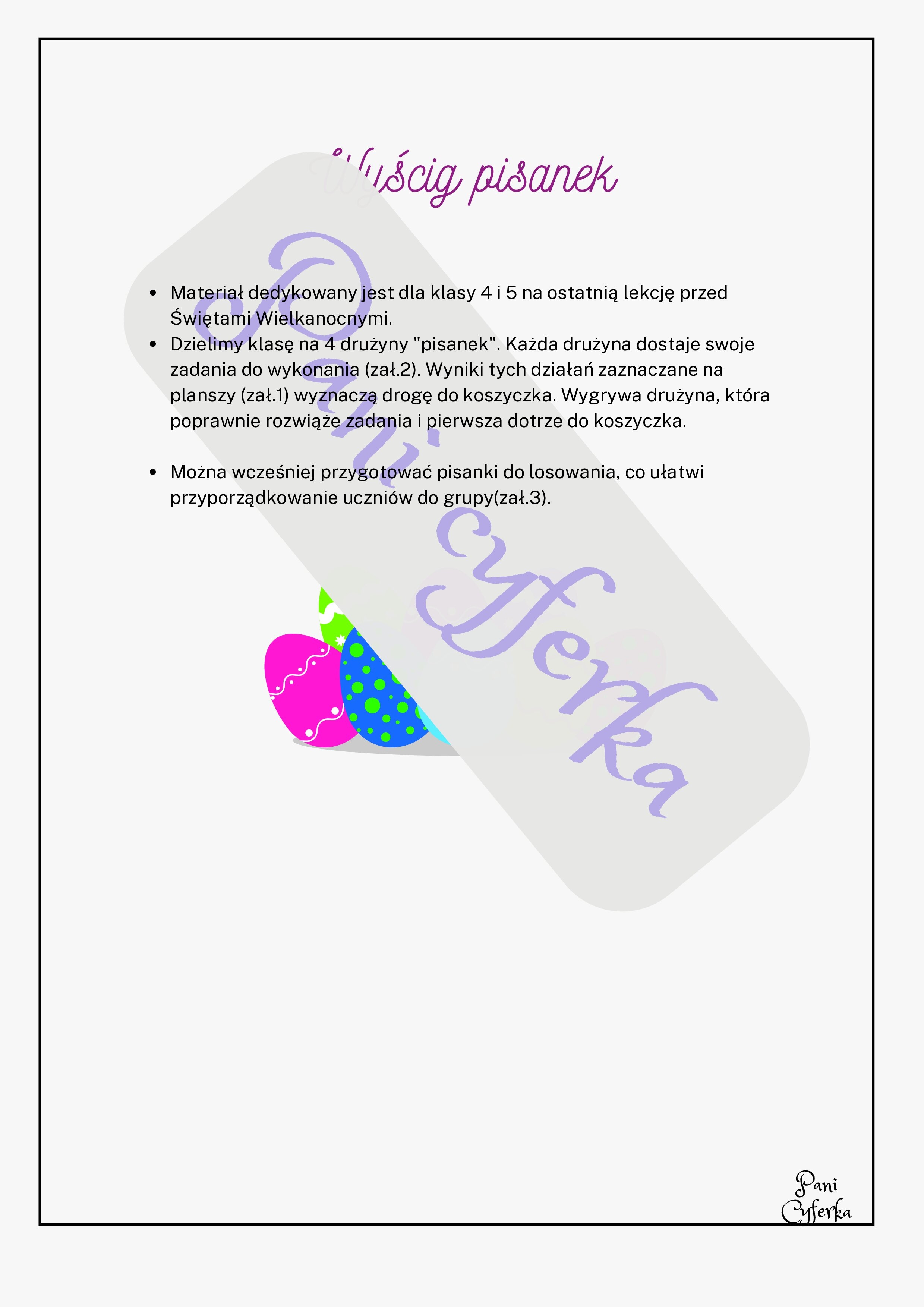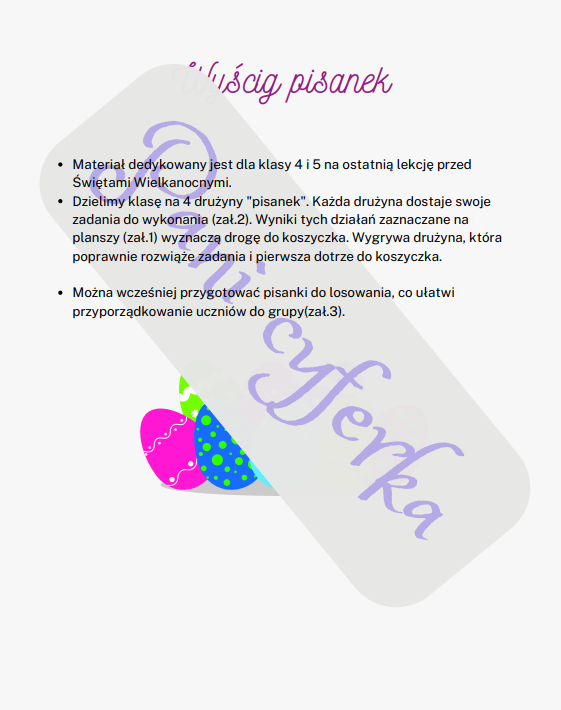 Materiał przeznaczony dl akl.4 i 5 na ostatnia lekcję matematyki przed Światami Wielkanocnymi.