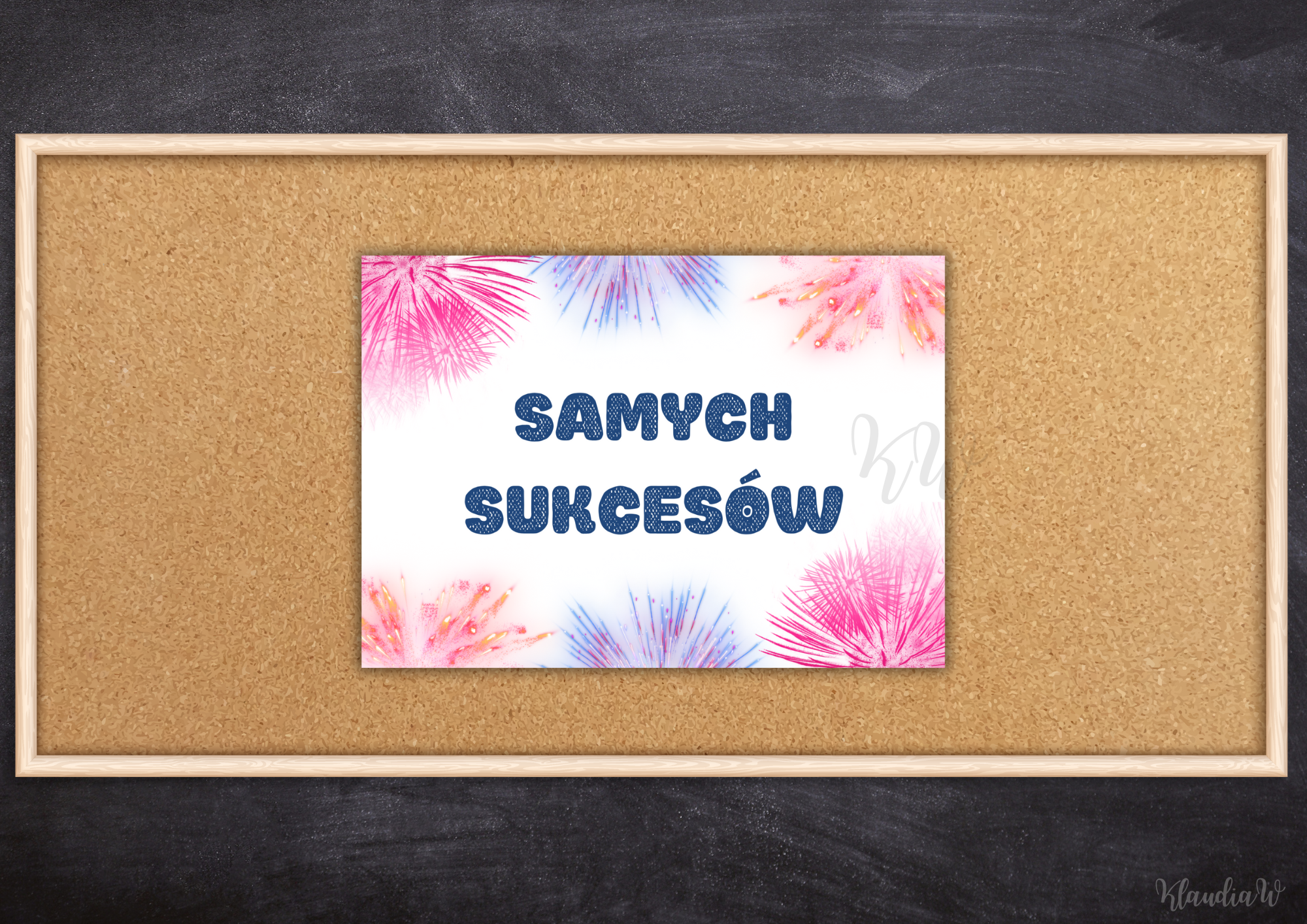 W skład zestawu wchodzą: - literki do stworzenia napisu „Z okazji Nowego Roku życzymy Wam…” - wysokość ok. 11–12 cm, - 12 plansz w formacie A4 z życzeniami. Dekoracja idealnie sprawdzi się na początek Nowego Roku, tworząc przyjazną i inspirującą przestrzeń dla uczniów.