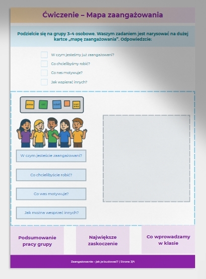 Ćwiczenie grupowe – mapa zaangażowania (instrukcja krok po kroku, szablony, miejsce na refleksje grupy i wnioski)