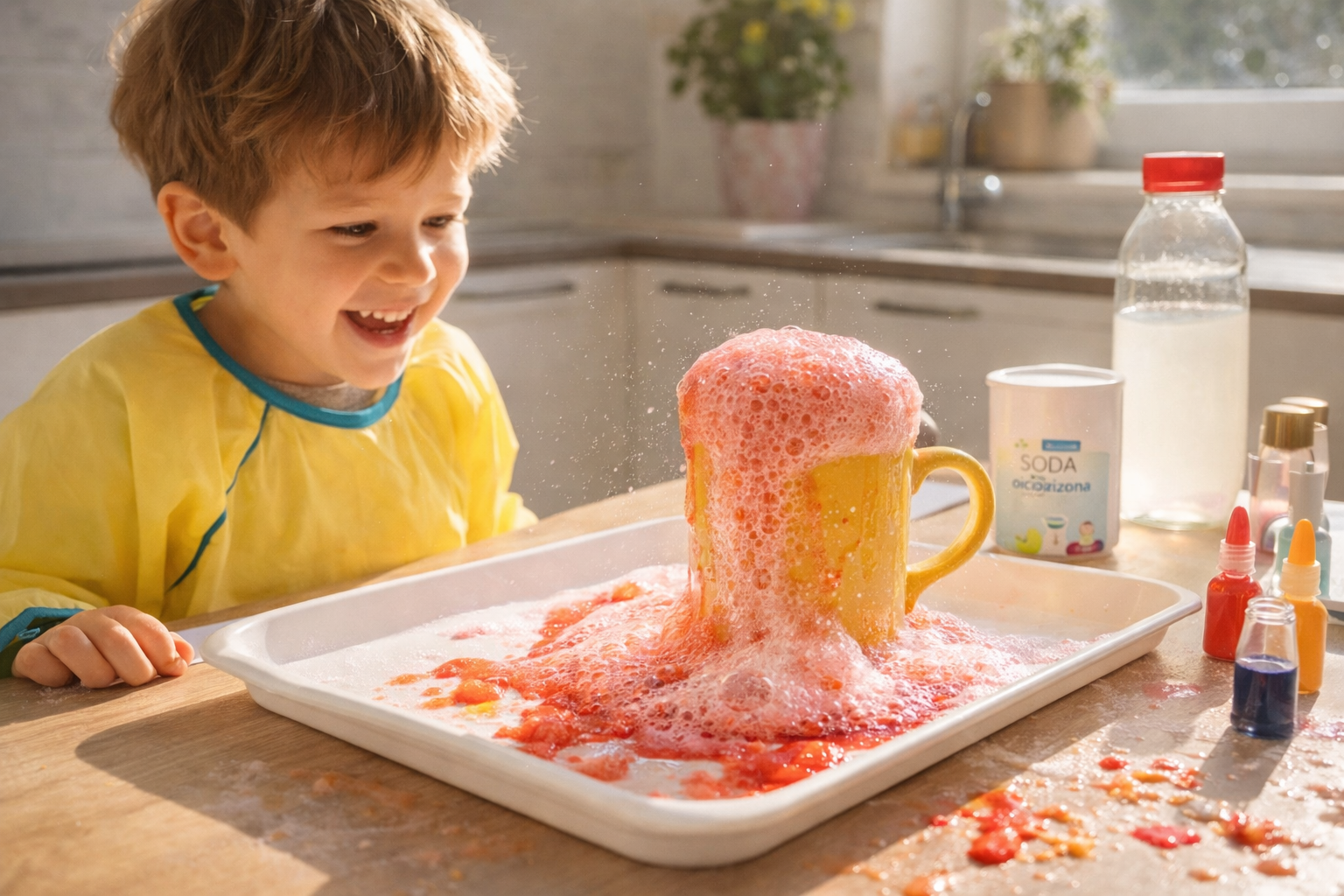 5️⃣ EKSPERYMENTY I ODKRYCIA – tęcza w słoiku, wulkan, magnesy, lawa w butelce, powietrzne śmigła! 🧪🌋🌬️