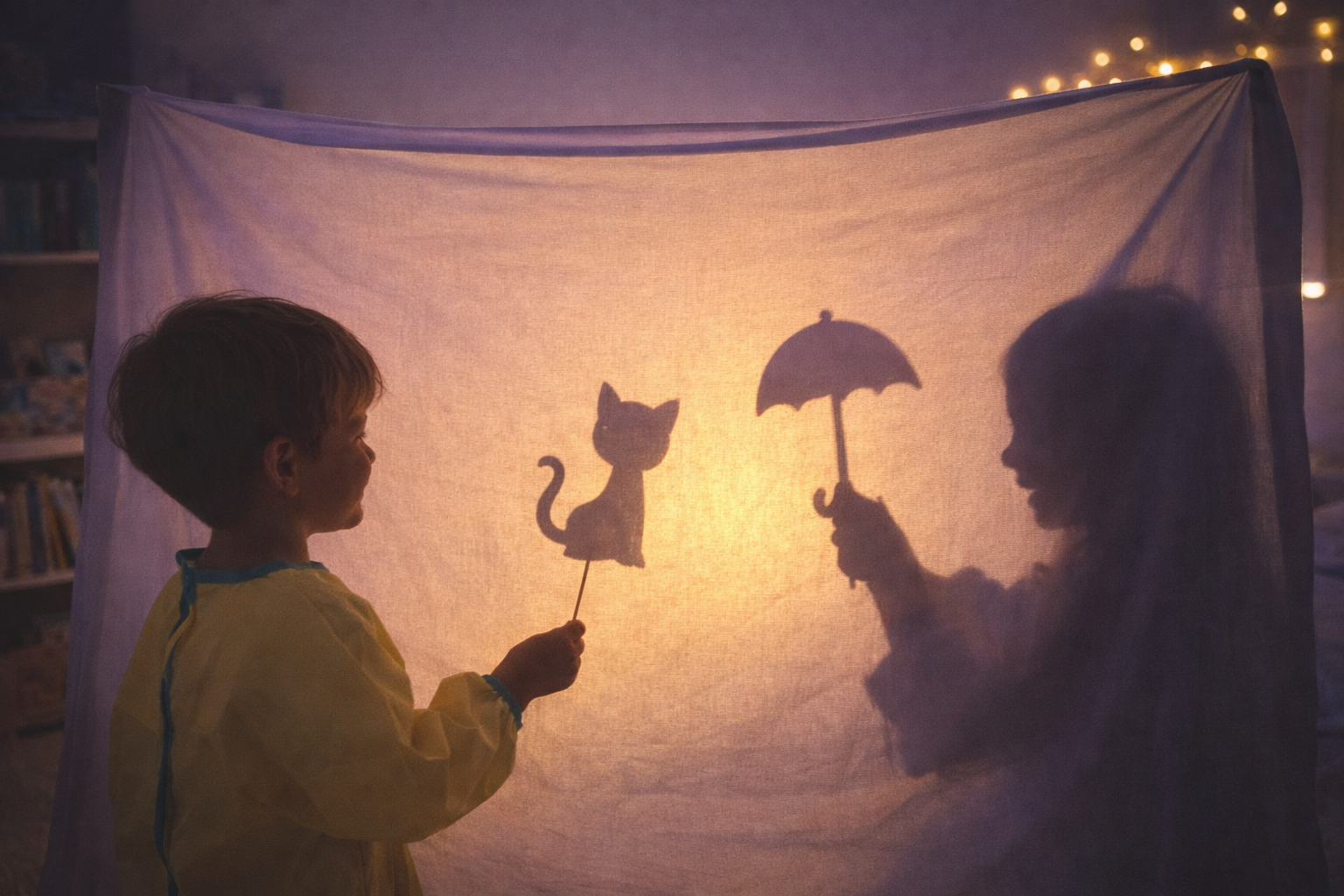 4️⃣ TEATR I EMOCJE – teatr cieni, pacynki, kukiełki, scenki, mimika, improwizacja, teatr dźwięków. 🎭💬💛