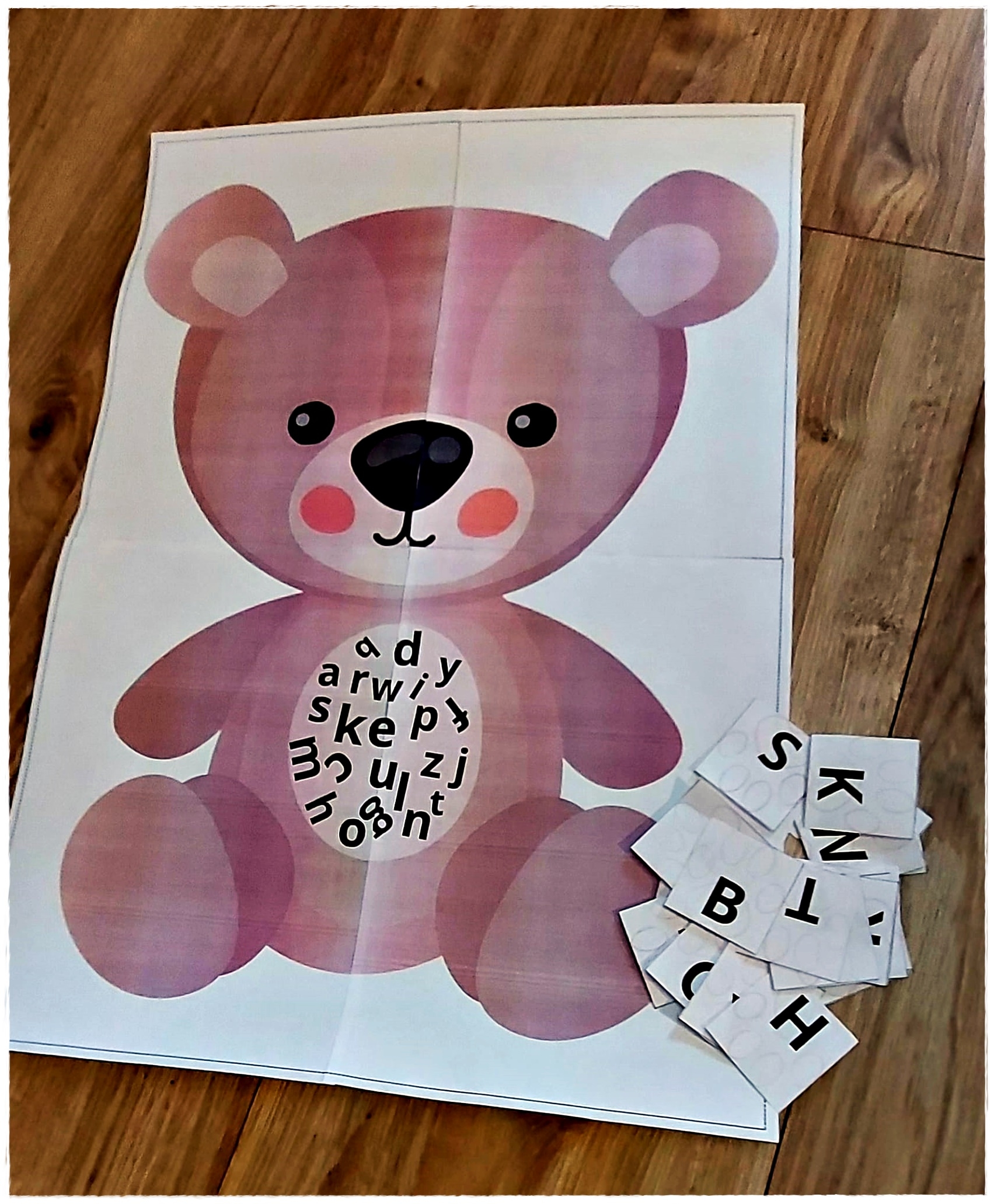 Ten zestaw to świetna propozycja do zabawy i nauki w przedszkolu z okazji Dnia Pluszowego Misia! W skład zestawu wchodzi duży obrazek misia (wydrukowany na 4 kartkach A4), na którego brzuszku znajduje się alfabet lub obrazki, umożliwiające rozwijanie umiejętności rozpoznawania liter i kojarzenia ich z obrazkami.