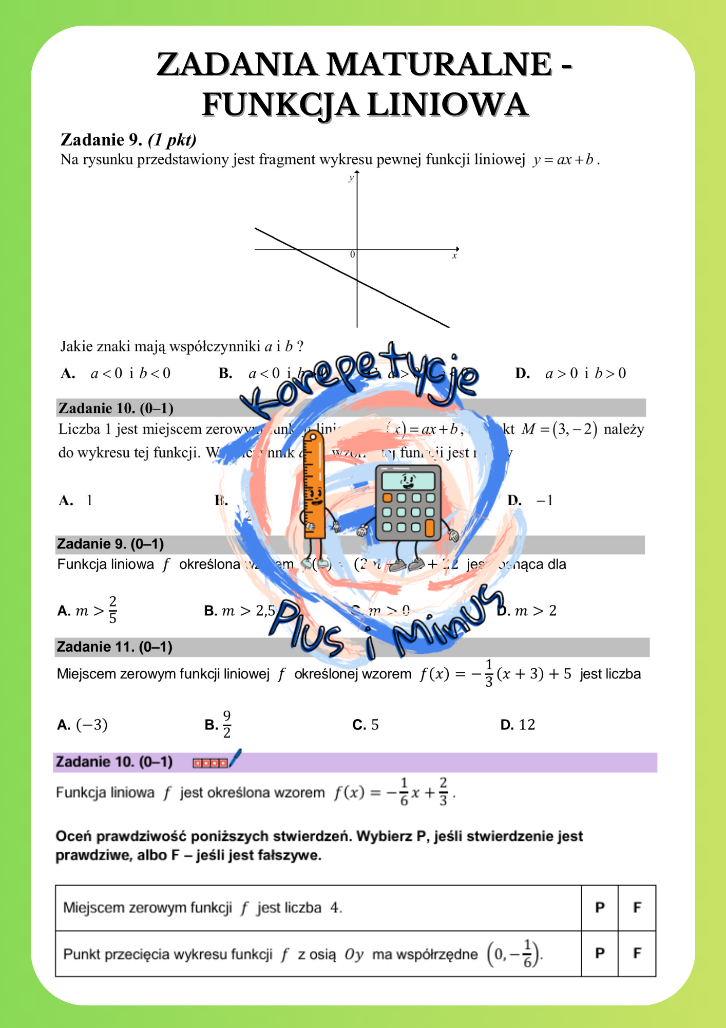 Ten plik PDF zawiera zestaw zadań maturalnych skupiających się na jednym z kluczowych działów – funkcja liniowa.