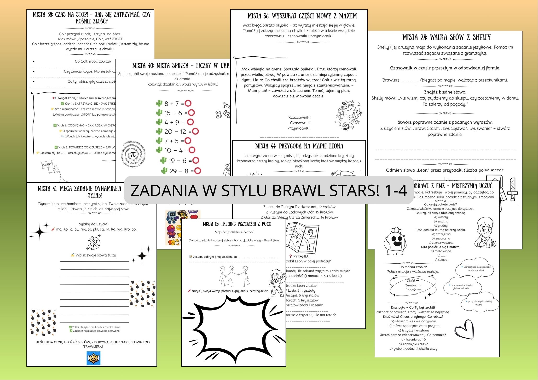 🔹 45 różnorodnych zadań: polonistyczne, matematyczne, przyrodnicze oraz TUS, które rozwijają umiejętności dzieci . Dla prawdziwych fanów słynnej gry Brawl Stars i nie tylko :)