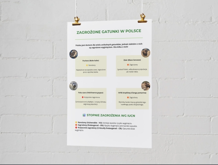 ✅ Czytelna siatka informacji o stopniach zagrożenia wg IUCN 📊