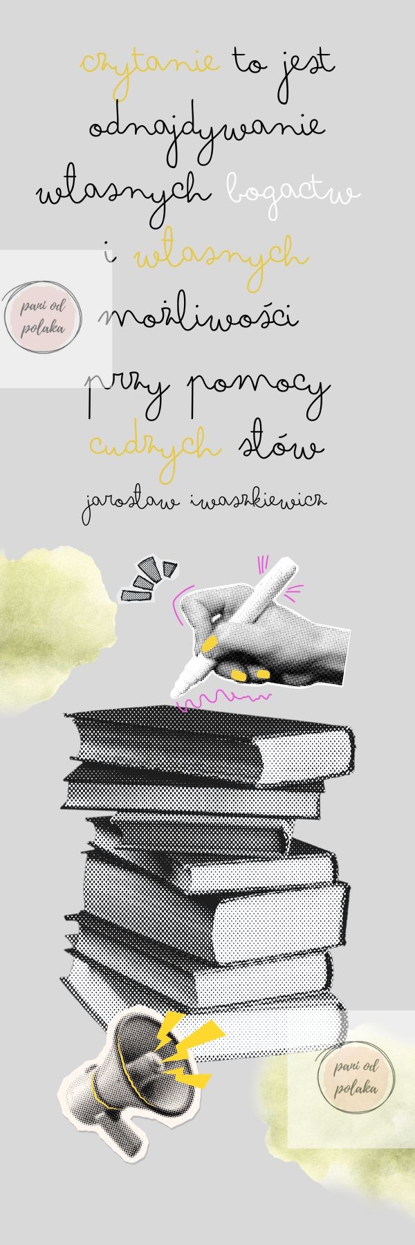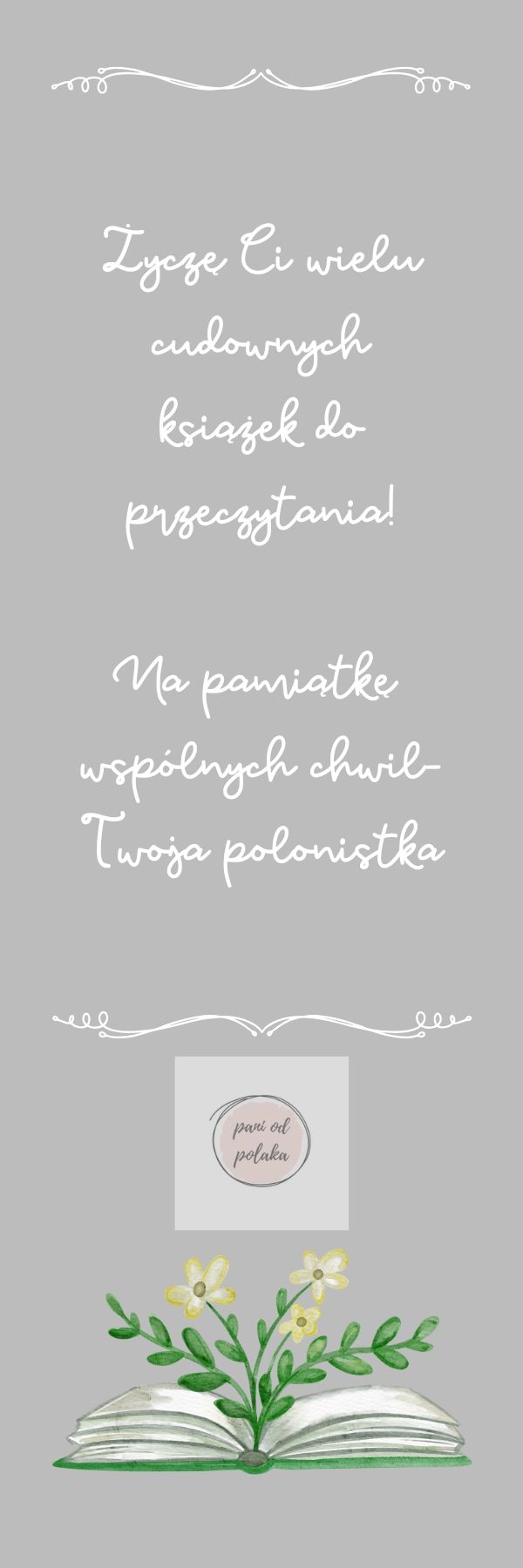 Zakładki do książek są odpowiedzią na Państwa zapytania o drobny upominek, który można podarować uczniom z okazji zakończenia roku szkolnego. Ta dwustronna zakładka utrzymane jest w klimacie retro. Z jednej strony znajduje się kolaż oraz cytat J. Iwaszkiewicza, a z drugiej życzenia: Życzę Ci wielu wspaniałych książek do przeczytania! Na pamiątkę wspólnych chwil - Twoja polonistka. Zostawiam trochę miejsca, aby zmieścił się jeszcze Państwa własnoręczny podpis, choć nie jest to, oczywiście, konieczne. Zapraszam także do obejrzenia innych zakładek:)
